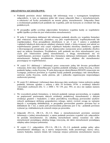 ZR-1/B lub ZL-1/B. NaleŜy poinformować podatnika, Ŝe pod pojęciem nieruchomości