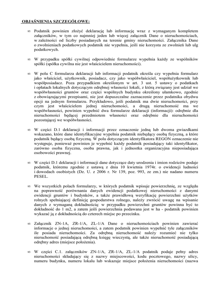 objaśnienia szczegółowe do wzorów informacji i deklaracji