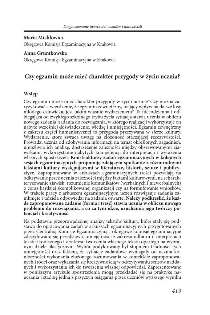 419 Czy egzamin może mieć charakter przygody w życiu ucznia?