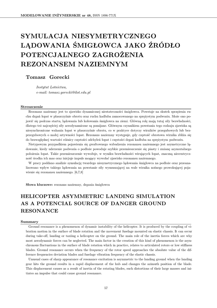 symulacja niesymetrycznego lądowania śmigłowca jako źródło