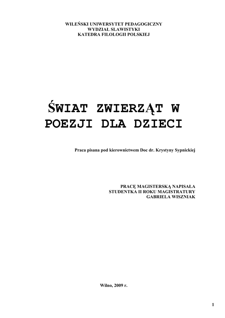 ŚWIAT ZWIERZĄT W POEZJI DLA DZIECI