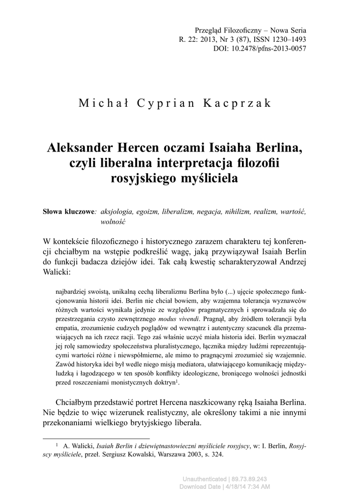 Aleksander Hercen oczami Isaiaha Berlina, czyli liberalna
