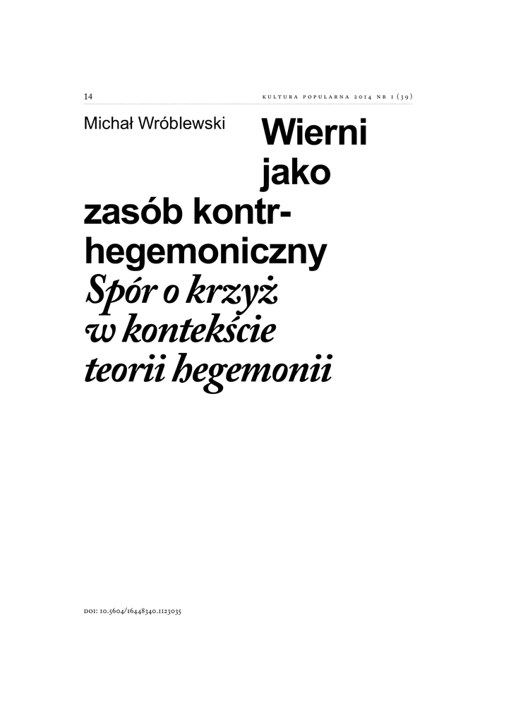 hegemoniczny Spór o krzyż w kontekście teorii hegemonii