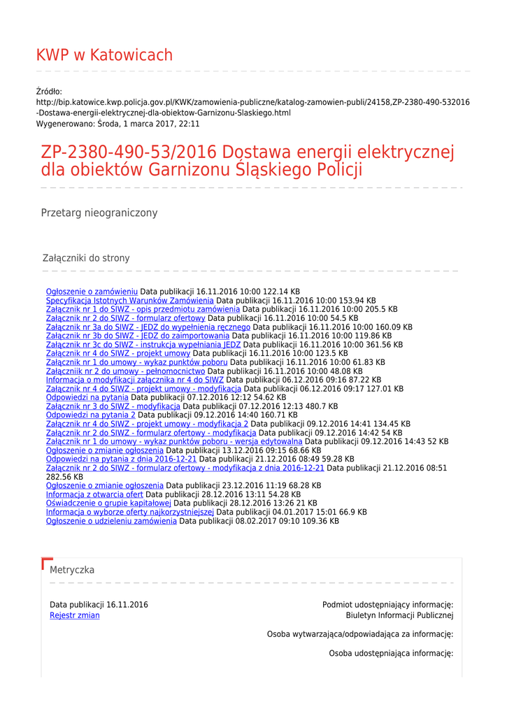 ZP-2380-490-53/2016 Dostawa energii elektrycznej dla obiektów