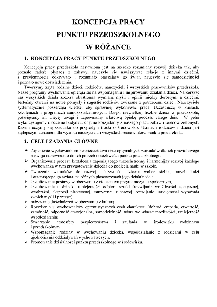 KONCEPCJA PRACY PUNKTU PRZEDSZKOLNEGO W RÓŻANCE