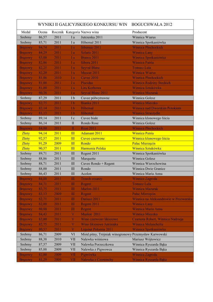 Wyniki II Galicyjski Konkurs Win Boguchwała 2012