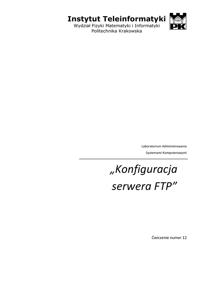 Konfiguracja serwera FTP - Instytut Teleinformatyki