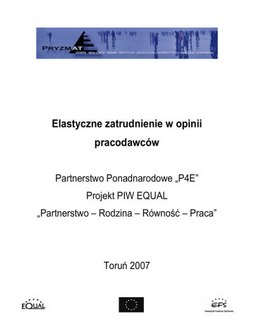 Elastyczne zatrudnienie w opinii pracodawców Partnerstwo Ponadnarodowe „P4E” Projekt PIW EQUAL „Partnerstwo – Rodzina – Równość – Praca” Toruń 2007 Spis treści Wstęp................................................................................................................................3 1. Charakterystyka elastycznych form zatrudnienia...................................................4 1.1. Wady i zalety elastycznych form zatrudnienia...........................................................4 1.2. Charakterystyka elastycznych form zatrudnienia.......................................................5 2. Analiza wyników badania...........................................................................................6 2.1. Dane na temat respondentów......................................................................................8 2.2. Stosowanie elastycznych form zatrudnienia w firmach respondentów....................11 2.3. Powody wprowadzenia elastycznych form zatrudnienia..........................................14 2.4. Korzyści ze stosowania elastycznych form zatrudnienia.........................................16 2.5. Powody niestosowania elastycznych form zatrudnienia..........................................20 2.6. Problemy związane ze stosowaniem elastycznych form zatrudnienia.....................20 2.7. Opinie na temat elastycznych form zatrudnienia.....................................................28 3. Podsumowanie...........................................................................................................30 2 Wstęp Zespół Realizacji Badań „Pryzmat” Instytutu Socjologii UMK, przeprowadził badanie na temat elastycznych form zatrudnienia. Badanie przeprowadzono na zlecenie władz projektu „Partnership for Equality”, realizowanego w ramach Inicjatywy Wspólnotowej EQUAL, a jego celem było zebranie opinii przedsiębiorców o szansach i barierach, jakie napotykają nowe, elastyczne formy zatrudnienia oraz o tym, czy mogą one być pomocne w godzeniu obowiązków zawodowych z rodzinnymi. Raport z badania, który prezentujemy, składa się z krótkiej części teoretycznej oraz szczegółowej części analitycznej. W ramach części teoretycznej definiujemy pojęcia z zakresu elastycznych form zatrudnienia, którymi posługiwać się będziemy w dalszych fragmentach, z kolei część analityczna poświęcona jest opisowi i interpretacji zgromadzonego przez nas materiału badawczego. 3 1. Charakterystyka elastycznych form zatrudnienia Mianem „elastycznych form zatrudnienia” określa się zatrudnienie oparte na innych niŜ tradycyjne, rozumiane jako umowa o pracę między pracodawcą a pracownikiem, z reguły w pełnym wymiarze godzin, w określonym przedziale czasowym oraz w określonym miejscu, formach. W przeciwieństwie do modelu tradycyjnego elastyczne formy zatrudnienia oparte są o pracę w niepełnym wymiarze godzin, elastyczny czas pracy lub/i wykonywanie obowiązków poza siedzibą firmy. Do głównych cech ekonomicznych elastycznych form zatrudnienia zalicza się niŜsze koszty zatrudniania pracowników oraz moŜliwość szybkiego dostosowania liczby pracowników do potrzeb firmy. 1.1. Wady i zalety elastycznych form zatrudnienia Bardzo często w literaturze przedmiotu zwraca się uwagę na pozytywne aspekty społeczne elastycznych form zatrudnienia. NaleŜą do nich między innymi: - moŜliwość aktywizacji zawodowej grup społecznych o utrudnionym dostępie do rynku pracy (młodych matek, niepełnosprawnych, osób starszych) - ułatwienie powrotu na rynek pracy osobom długotrwale bezrobotnym - moŜliwość rozwoju zawodowego osób bez dotychczasowego doświadczenia na rynku pracy (studenci) Podkreśla się równieŜ korzyści dla pracodawców, płynące z zastosowania elastycznego zatrudnienia. Są to, między innymi: - łatwiejsza wymiana kadr - ponoszenie mniejszych kosztów zatrudnienia - lepsza adaptacyjność firmy do warunków rynku - łatwiejsze pozyskanie drogich ekspertów - lepsze dopasowanie zatrudnienia do profilu działalności organizacji Problemy wynikające z zatrudniania pracowników w formie elastycznej mogą dotyczyć zarówno pracowników, jak i pracodawcy. Ze strony zatrudnionego mogą wystąpić obawy związane z nierównym traktowaniem elastycznie zatrudnionych w firmie oraz brak stabilizacji stanowiska pracy. Z kolei na niekorzyść przedsiębiorcy wpływać moŜe 4 mniejsza identyfikacja pracownika z firmą oraz potencjalne konflikty pomiędzy stałym zespołem a pracownikami zatrudnionymi za pomocą elastycznych form. 1.2. Charakterystyka elastycznych form zatrudnienia Obecnie, w ramach elastycznych form zatrudnienia, najczęściej wymienia się: pracę na czas określony, pracę w niepełnym wymiarze godzin, pracę na wezwanie, telepracę, wypoŜyczanie pracowników, indywidualną organizację pracy przez pracownika oraz samozatrudnienie. Praca na czas określony jest najczęściej stosowaną formą elastycznego zatrudnienia, która polega na zawiązywaniu terminowej umowy o pracę. Dodać naleŜy, Ŝe jest to forma elastyczna przede wszystkim z punktu widzenia pracodawcy, gdyŜ dla pracownika oznacza często jedynie mniejszą ochronę stosunku pracy. Praca w niepełnym wymiarze godzin jest rodzajem pracy, w którym zatrudniony pracuje mniej niŜ 35 godzin tygodniowo. Najczęściej przyjmowane są trzy rozwiązania: 80% pełnego etatu (32 godziny tygodniowo), 60% pełnego etatu (24 godziny tygodniowo), 50% pełnego etatu (20 godzin tygodniowo). W ramach tej formy elastycznego zatrudnienia występują: - job-sharing, polegający na dzieleniu pełnego wymiaru godzin między dwie zatrudnione na tym samym stanowisku osoby. W tym modelu z reguły spotyka się trzy róŜne warianty, mianowicie: zmiany tygodniowe (pracownicy wymieniają się co tydzień), dzielenie dnia pracy (kaŜdy pracuje po 4 godziny dziennie), podział tygodnia pracy (pracownicy pracują po 2,5 dnia w tygodniu