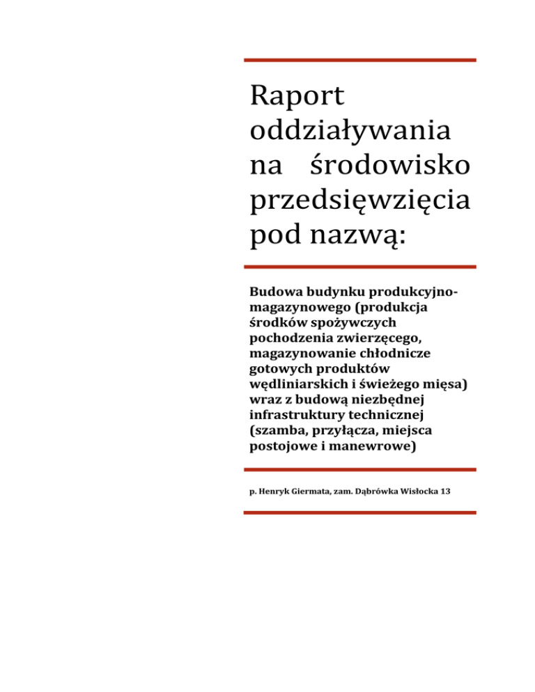 gotowych produktów wędliniarskich i świeżego mięsa) wraz z budową niezbędnej infrastruktury technicznej (szamba, przyłącza, miejsca