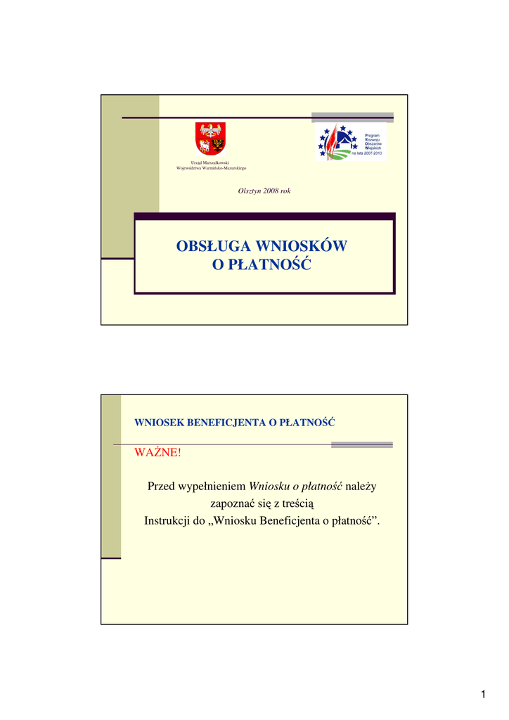 OBSŁUGA WNIOSKÓW O PŁATNOŚĆ