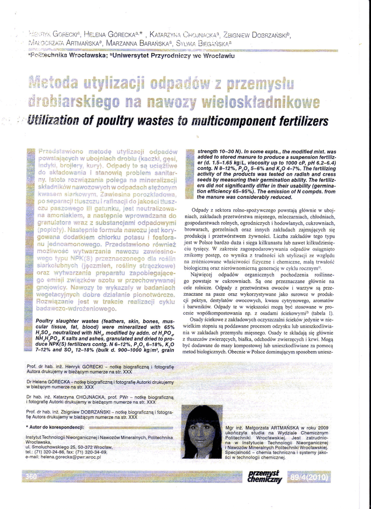 6. K. Chojnacka,M. Barafiska,H. Gorecka,H. G6recki,Przem.Chem.
