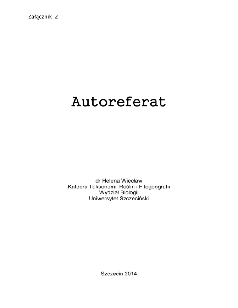 Autoreferat - Wydział Biologii | Uniwersytet Szczeciński