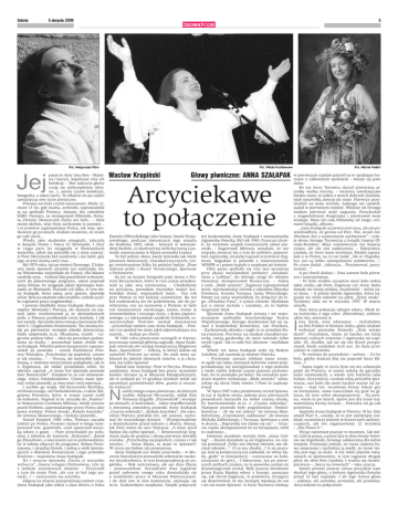 Sobota 5 sierpnia 2006 3 Fot. Małgorzata Pióro pasje to: koty (ma dwa – Mamina i Gucia), kapelusze (ma ich kolekcję: – Bez nakrycia głowy czuję się niekompletnie ubrana…), anioły (znów kolekcja), fotografia, a także narty. To właśnie im po części zawdzięcza swe życie piwniczne. Piwnica nie była czymś nieznanym. Miała 12, może 13 lat, gdy mama, architekt, zaprowadziła ją na spektakl Piwnicy, dawany dla członków SARP. Pamięta, że występowali Obłoński, Kwinta, Dymny; Demarczyk chyba nie było… – Była moim idolem, więc bym zachowała w pamięci… I oczywiście zapamiętałam Piotra, tak więc spotkawszy go po latach, miałam wrażenie, że znam go całe życie… Wtedy, jako studentka etnografii, tańczyła w Zespole Pieśni i Tańca UJ Słowianki. I choć w ciągu paru lat osiągnęła w Słowiankach wszystko, jakoś nie potrafiła się z nimi rozstać. A Piotr Skrzynecki był zazdrosny i nie lubił, gdy jego artyści dzielą swój czas… Był 1979 roku, tuż po śmierci Dymnego. Z kabaretu wielu dawnych artystów już wyfrunęło, Irena Wiśniewska wyjeżdżała do Francji, Ola Maurer urodziła syna… Andrzej Maj poszukiwał wykonawczyń do planowanego programu, zatem poprosił Annę Klimas, by ściągnęła jakieś śpiewające koleżanki ze Słowianek. Przyszło ich kilka, w tym Anna Szałapak, która sama, przy gitarze, śpiewała od lat. Była na ostatnim roku studiów, czekało ją tylko napisanie pracy magisterskiej… I pewnie dzieliłaby Anna Szałapak dłużej czas między Słowianki i Piwnicę, ale złamany na nartach palec wyeliminował ją ze słowiankowych prób, a Piwnica pochłaniała coraz bardziej. I tak już zostało. Sprzyjała temu rosnąca fascynacja Piotrem S. i Zygmuntem Koniecznym. Ten zresztą bodaj po pierwszym występie młodej dziewczyny, kiedy zaśpiewała m.in. Okudżawę, orzekł: – Logicznie podany tekst. – Ależ się poczułam podniesiona na duchu – przywołuje tamte chwile Anna Szałapak. Wkrótce potem kompozytor zaproponował jej piosenkę – erotyk Kazimierza Przerwy–Tetmajera „Przychodzę cię popieścić, czemu ci tak smutno...”. – Uroczą, ale niezwykle karkołomną, z wieloma muzycznymi pułapkami, jak to u Zygmunta, ale widać poradziłam sobie, bo wkrótce zapytał: „A może byś śpiewała piosenki Ewy Demarczyk?”. Uznałam to za coś niestosownego, wręcz świętokradztwo. Czemu mam śpiewać cudze piosenki, ja chcę mieć swój repertuar… I szybko go miała. Od Krzysztofa Rychlika, od Koniecznego, od Pawluśkiewicza, a także Zbigniewa Preisnera, który w tymże czasie trafił do kabaretu. Napisał m.in. muzykę do „Psalmu” w tłumaczeniu Czesława Miłosza, wtedy jeszcze przed Noblem, zapowiadanego przez Piotra jako poeta wyklęty. Potem doszła „Kolęda katyńska” do wiersza Skonecznego, i kolejne piosenki… Nastał Sierpień 1980 roku, Piwnica zaczęła jeździć po Polsce, Preisner niemal w biegu komponował tzw. gazetówki, czyli opatrywał muzyką teksty z gazet. – Piotr przychodził po południu z tekstem do kawiarni „Kolorowa”, dawał go Zbyszkowi, a wieczorem już to próbowaliśmy, by w sobotę włączyć do programu. Byłam Prototopową, i Ariadną Gierek, i jedną z osób śpiewających o Marianie Koniecznym i jego pomniku Koniewa – wspomina Anna Szałapak. No i jeszcze śpiewała „Partia ci wszystko wybaczy”, dawny szlagier Ordonówny, tyle że z jednym zmienionym słowem. – Przyszedł z tym do mnie Piotr, ale czy to był jego pomysł…? – zastanawia się artystka. Zdjęcia na ścianie przypominają tamten czas: Anna Szałapak jako jedna z dam dworu u boku Jej Fot. Witold Kudriawcew Wacław Krupiński Głowy piwniczne: ANNA SZAŁAPAK Arcyciekawe to połączenie Daniela Olbrychskiego jako księcia Józefa Poniatowskiego, podczas inscenizacji jego wjazdu do Krakowa 1809, obok – koncert w warszawskiej Stodole, co skończył się nielichą burzą z powodu umieszczenia w klatce pomnika Lenina. To był jedyny okres, kiedy śpiewała tak wiele piosenek śmiesznych, charakterystycznych, czego zwieńczeniem kilka lat później będzie „Duet miłosny pchły i słonia” Koniecznego, śpiewany z Preisnerem. Są też na ścianie fotografie pani domu z Piotrem Skrzyneckim, który w tym czasie przedstawiał ją jako swą narzeczoną. – Chodziliśmy na przyjęcia, poznałam wszystkie ważne krakowskie domy, wspaniałych ludzi… Ten rok przy Piotrze to był kolejny uniwersytet. Bo też był osobowością nie do podrobienia, nie do powtórzenia; noc na rozmowie z Piotrem to było coś niesamowicie ożywczego, zatem, mimo iż nienawidziłam i nocnego życia, i dymu papierosowego, a i odczuwałam zazdrość koleżanek, towarzyszyłam Piotrowi niemal nieustannie – przywołuje tamten czas Anna Szałapak. – Pewnie i on spotkał we mnie jakiś odpowiadający mu nastrój… – dodaje po chwili. W 1981 roku piwnicznie wystąpili w Arezzo, przywożąc stamtąd główną nagrodę. Anna Szałapak otwierała ów występ kompozycją Zbigniewa Raja „Spanioletta”. – Jedyną, w której dałam się namówić Piotrowi na taniec. On stale mnie nakłaniał do jakichś dziwnych tańców, a ja chciałam już tylko śpiewać. Nastał stan wojenny. Piotr w Paryżu. Piwnica zamknięta. Anna Szałapak bez pracy; wcześniej bardzo chciano ją w Muzeum Etnograficznym, ale w realiach po 13 grudnia dyrektor wolał nie sprawdzać prawdziwości słów „partia ci wszystko wybaczy”. astrój owego czasu piwniczan, do których szybko dołączył Skrzynecki, oddał film Tomasza Zygadły „Przewodnik”; występy po domach, w kościołach… Jakże współbrzmiały z ówczesną atmosferą piosenki Anny Szałapak „Czarna sukienka”, „Kolęda katyńska”. Ale naturalnie Piwnica potrafiła też, jak zawsze, zachować do wszystkiego dystans. – Występowaliśmy u dominikanów przed jednym z ołtarzy. Słyszę, jak Piotr mówi do ojca Tomasza: „A teraz anioł będzie dla