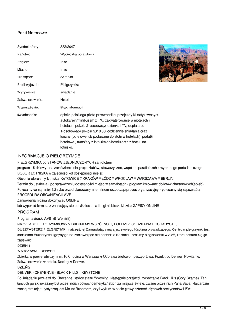 program 15 dniowy - na zamówienie dla grup:, klubów, stowarzyszeń, wspólnot parafialnych z wybranego portu lotniczego