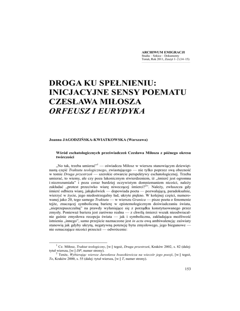 droga ku spełnieniu: inicjacyjne sensy poematu czesława miłosza