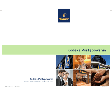 Kodeks Postępowania Kodeks Postępowania Executive Board Tchibo GmbH • Zarząd Tchibo GmbH CoC Poland Trennungen neu RZ.indd 1-2 26.10.10 16:52 To all Employees of Tchibo Hamburg, September 2010 Do wszystkich pracowników Tchibo Hamburg, wrzesień 2010 Dear colleagues, Drogie Koleżanki i Koledzy! Three years ago, Tchibo adopted its own Code of Conduct. Therein we set out our values and standards of ethical business practices and good entrepreneurial conduct. Our employees received an understanding of our Code of Conduct and its content through many training initiatives. The response to our Code of Conduct has been positive throughout, not only among our employees but also our business partners. Trzy lata temu firma Tchibo stworzyła własny Kodeks Postępowania. Ujęliśmy w nim wartości i standardy etycznego biznesu oraz zasady dobrych praktyk przedsiębiorstwa. Wytyczne zawarte w Kodeksie oraz sama jego treść zostały przedstawione pracownikom podczas licznych szkoleń. Kodeks postępowania został dobrze przyjęty nie tylko przez samych pracowników, lecz zyskał także przychylność naszych partnerów handlowych. This version of the Code of Conduct has been broadened to include rules regarding data protection and now comprises 13 regulations which still address both universal issues and topics that are specific to Tchibo. Furthermore, we have implemented across the group a Whistle-blower Hotline (formerly known as external ombudsman) giving employees access to trustworthy contact persons. Experience has shown that there is a need for this. The Code of Conduct is binding on all Tchibo employees. We want all Tchibo personnel around the world to be committed to ethical business practices, fair conduct and to abide by all laws. This is and will be vital for our future international success. With best regards, Niniejsza wersja Kodeksu Postępowania została uzupełniona o wytyczne dotyczące ochrony danych. W chwili obecnej Dr. Markus Conrad, Vorstandsvorsitzender więc Kodeks składa się z 13 zasad, które odnoszą się der Tchibo GmbH zarówno do kwestii ogólnych, jak i spraw dotyczących specyficznie Tchibo. Ponadto całej grupie daliśmy możliwość kontaktowania się z infolinią Kodeksu Postępowania dla zgłaszających nieprawidłowości, która stwarza pracownikom szansę skontaktowania się z naprawdę godnymi zaufania osobami. Doświadczenie podpowiada, że jest to bardzo potrzebne rozwiązanie. Kodeks Postępowania obowiązuje wszystkich pracowników Tchibo. Chcielibyśmy, aby wszyscy stosowali etyczne zasady i uczciwe sposoby postępowania, oraz aby postępowali zgodnie ze wszystkimi zasadami prawa. Takie postępowanie ma i będzie miało kluczowe znaczenie dla naszych dalszych sukcesów na międzynarodowych rynkach. Z wyrazami szacunku, CoC Poland Trennungen neu RZ.indd 3-4 26.10.10 16:52 TABLE OF CONTENTS Kodeks Postępowania składa się z trzech części:: 1 Preamble 1 Preambuła 2 The fundamental rules of conduct 2 Podstawowe zasady postępowania 2.1 Fair competition 2.1 Uczciwa konkurencja 2.2 Prevention of corruption and granting of undue advantages 2.2 Zapobieganie korupcji i udzielaniu nieuzasadnionych korzyści 2.3 Data protection 2.3 Ochrona danych 2.4 Safety and environmental responsibility 2.4 Odpowiedzialność za bezpieczeństwo i ochronę środowiska 2.5 Social responsibility 2.5 Odpowiedzialność społeczna 2.6 Discrimination ban 2.6 Zakaz dyskryminacji 2.7 Insider law 2.7 Prawo poufności 2.8 Protection of corporate property and business secrets 2.8 Ochrona własności i mienia Firmy i tajemnic biznesowych 2.9 Protection of intellectual property 2.9 Ochrona własności intelektualnej 2.10 Avoidance of conflicts of interest – private activities 2.10 Unikanie konfliktów interesów - działalność prywatna 2.11 Truthful and complete accounting in accordance whith the law 2.11 Uczciwa, kompletna i zgodna z prawem księgowość 2.12 Economical use of corporate resources 2.12 Oszczędne korzystanie z zasobów Firmy 2.13 Representatives of the Company 2.13 Przedstawiciele Firmy 3 Applicability and implementation of this Code of Conduct 3 Zastosowanie i wdrażanie Kodeksu postępowania CoC Poland Trennungen neu RZ.indd 5-6 26.10.10 16:52 1 1 Preambuła Preamble Our business partners’, customers’, shareholders’, regulators’, the general public’s and other stakeholders’ trust in the responsible and lawful conduct of all Tchibo employees is of paramount importance for our Company’s reputation and success. We expect a high degree of social and ethical competence from all our employees. These standards also apply when selecting our business partners. In order to strengthen this competence, Tchibo, as a company and through its executives, is going to advise and pro-actively support you. Responsible and lawful conduct should be a matter of course. The present Code of Conduct therefore does not contain any new rules but rather illustrates the requirements placed upon our behaviour in both the external and internal discharge of our responsibilities. In this regard, Tchibo employees are only responsible to the Company, not any individual, e.g. their line manager. Observing the laws and regulations of the countries in which we operate is our utmost priority. We will not engage in actions that might lead to a violation of laws, nor will we, through inaction, allow such laws to be broken. Any exception is totally unacceptable, even if based upon conduct or customs customary in the trade or region. Zaufanie naszych partnerów biznesowych, klientów, akcjonariuszy, urzędów, opinii publicznej i innych osób zainteresowanych w odpowiedzialne i legalne postępowanie wszystkich pracowników Tchibo jest sprawą najwyższej wagi dla reputacji i sukcesu naszej Firmy. Od wszystkich naszych pracowników oczekujemy wysokich kompetencji społecznych i etycznych. Normy te obowiązują również podczas wyboru naszych partnerów biznesowych. W celu wzmocnienia ty