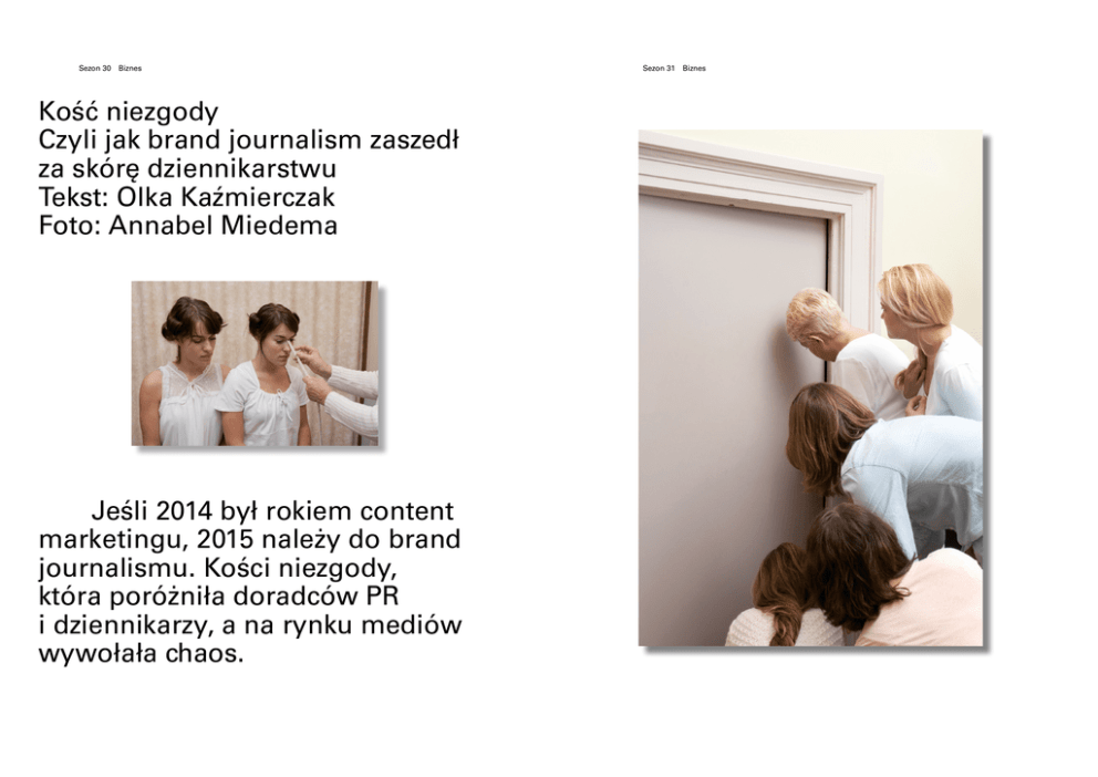 Sezon 30 Biznes Kość niezgody Czyli jak brand journalism zaszedł za skórę dziennikarstwu Tekst: Olka Kaźmierczak Foto: Annabel Miedema Jeśli 2014 był rokiem content marketingu, 2015 należy do brand journalismu. Kości niezgody, która poróżniła doradców PR i dziennikarzy, a na rynku mediów wywołała chaos. Sezon 31 Biznes Sezon 32 Biznes I. Powód, dla którego marki stopniowo rezygnują z pośrednictwa mediów i decydują się na dostarczanie treści we własnym zakresie, jest prosty. Nigdy wcześniej klient nie był tak blisko marki i nigdy wcześniej nie można było go dosięgnąć tak łatwo – szczególnie za pośrednictwem mediów społecznościowych, które nadały współczesnej komunikacji nowego tempa. To jedno. Drugie, to sceptycyzm odbiorców w stosunku do reklamy. W dzisiejszym świecie już nikt nie ufa sloganom z bilboardów. Jako konsumenci diametralnie zmieniliśmy swoje podejście do marek i generowanych przez nie treści. Produkty muszą nie tylko przyciągać uwagę krzykliwymi hasłami, ale i mieć osadzenie w kontekście, który odzwierciedla styl bycia konkretnej grupy konsumentów. To, co jest dziś dla nas oczywiste, czyli entourage marek – firmowe blogi, custom publishing, a w kontekście mody – propozycje stylizacji („na wieczór”, „na piknik w Southampton”, „dla eleganckiej plażowiczki”), dedykowane newslettery i zgrabnie podane biuletyny z ambitnymi treściami – jeszcze kilka lat temu nie istniały. Markę można było poznać w jej stacjonarnym sklepie. O filozofii usłyszeć (lub nie) od sprzedawcy. Założyciela znać z opowieści znajomych, a o produkcie wiedzieć tyle, ile jest napisane na metce. Sezon 33 II. Niemały wkład w wybawienie zdanego na reklamy klienta miała marka Ralph Lauren, która w latach 90. wymyśliła koncepcję lifestyle’u. Kiedy inne domy mody walczyły o przetrwanie, Ralph Lauren z powodzeniem sprzedawał ubrania z „osobowością”. Niedługo później jako pierwszy pomyślał o tworzeniu edytoriali. O „dziennikarstwie markowym” z prawdziwego zdarzenia zamarzył w 2000 roku syn Ralpha, David Lauren. Za cel obrał sobie zbudowanie strony internetowej pełniącej funkcję rozrywkową. Spełnić wizję Davida miała ekipa nowopowstałej firmy Ralph Lauren Media, w której naprędce zatrudniono 40 pracowników. W tym samym roku, przy imponującym tempie prac, szczęśliwie wypuszczono na rynek pierwszą na świecie stronę e-commerce, stworzono wirtualny Ralph Lauren Magazine i Ralph Lauren TV, kanał internetowy poświęcony sztuce, designowi, sportowi i wywiadom z celebrytami. To połączenie komercji i oryginalnych publikacji rozrywkowych David nazywał „merchantainmentem”. Piętnaście lat temu był to twór, jakiego świat wcześniej nie widział. Dziś merytoryczną treść nazywamy content marketingiem, a umiejętność opowiadania o marce storytellingiem. Na przecięciu tych dwóch zjawisk w 2004 roku ukuto pojęcie „brand journalism”. Biznes III. Ojcem brand journalismu jest Larry Light, który w 2004 roku jako szef biura marketingu McDonald’s stwierdził, że „pojedyncza reklama nie opowiada całej historii marki” i zaproponował nową technikę marketingową – brand journalism. W jego pojęciu jest to komunikacja w dziennikarskim stylu. Informowanie o marce w sposób edukujący konsumenta i budujący społeczność. Opowiadanie angażujących historii, z którymi łatwo się utożsamić. Myślenie o wiadomościach wielowymiarowych, publikowanych w różnych kanałach i trafiających do zróżnicowanej grupy odbiorców. Brand journalism nie koncentruje się na produktach lub usługach dostarczanych przez markę. Jego zadaniem jest szukanie nowych kontekstów i otwieranie się na różne punkty widzenia. – Brand journalism nie może powstawać w oderwaniu od tego, co przyciąga największe zainteresowanie klientów. By dostarczać wartościowych treści, PR-owcy muszą przestawić się z trybu tworzenia nudnych informacji prasowych na tryb słuchania. Pomocne są tu media społecznościowe, dzięki którym „na żywo” możemy zobaczyć, o czym mówią konsumenci i co jest dla nich ważne – podkreśla PR & marketing manager VML Poland Łukasz Majewski. – Dobre „dziennikarstwo markowe” to po prostu dobre dziennikarstwo – dodaje. IV. W 2010 roku w ślady pioniera brand journalismu w modzie, Ralpha Laurena, poszedł koncern LMVH, dając początek projektowi NOWNESS – kanałowi video pokazującemu współczesną kulturę poprzez film. Z kolei ekskluzywny multibrand NetA-Porter najpierw debiutował edytorialem online „The Edit”, a następnie drukowanym magazynem „Porter”, w którym proporcja tekstów do reklam wyniosła 65% do 35%. Brand journalism w ciekawy sposób zaadaptowano na platformie SWIDE, należącej do marki Dolce&Gabbana. Tematem przewodnim SWIDE jest odmieniona przez przypadki sycylijskość. Wraz ze SWIDE odkrywamy włoską kuchnię, obyczaje, krajobrazy i szeroko pojęty styl życia południowca. Brand journalism istnieje również w świadomości polskich PR-owców i marketingowców. Warto wspomnieć magazyn marki Solar, który pojawia się na rynku od trzech sezonów. Powstałe we współpracy z Futu Group pismo nie odbiega standardem od zagranicznych publikacji. Czarna, matowa okładka ozdobiona złotymi literami subtelnie zapowiada sesje fotograficzne oraz artykuły poświęcone historii, szeroko pojętemu projektowaniu oraz sztuce. Wydawnictwo poznańskiego Solara z powodzeniem mogłoby być sprzedawane jako magazyn mody. V. I tu pojawia się główny zarzut wobec brand journalismu. Produkowane przez marki treści często przypominają niezależne publikacje, co według krytyków tego zjawiska, dezorientuje konsumenta i wprowadza chaos na rynku mediów. O pomieszaniu energii ma świadczyć już sam oksymoron „brand journalism” („brand” to komercyjna marka, „journalism” to niezależne dziennikarstwo). Jay Rosen, wie