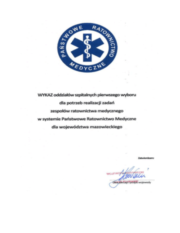 Załącznik nr 1 Wykaz oddziałów szpitalnych pierwszego wyboru dla świadczeń w zakresie: chirurgia ogólna dla pacjentów dorosłych Województwo mazowieckie Miejsce zdarzenia na terenie województwa Adres oddziału szpitalnego Nazwa oddziału szpitalnego Nazwa i adres szpitala, w którym działa oddział szpitalny pierwszego (dzielnica, gmina, pierwszego wyboru pierwszego wyboru wyboru powiat, miasto) alfabetycznie Powiaty i miasta na prawach powiatu ul. J. Aleksandrowicza 5, 26-617 Oddział Chirurgii Ogólnej Mazowiecki Szpital Specjalistyczny Sp. z o. o. białobrzeski Radom i Onkologicznej ul. J. Aleksandrowicza 5, 26-617 Radom ul. Powstańców Wielkopolskich 2, Specjalistyczny Szpital Wojewódzki w Ciechanowie ciechanowski Oddział Chirurgii Ogólnej 06-400 Ciechanów ul. Powstańców Wielkopolskich 2, 06-400 Ciechanów Samodzielny Publiczny Zakład Opieki Zdrowotnej w Garwolinie garwoliński ul. Lubelska 50, 08-400 Garwolin Oddział Chirurgiczny ul. Lubelska 50, 08-400 Garwolin Arion Med. Sp. z o. o. gostyniński ul. Kruk 5, 09-500 Gorzewo Oddział Chirurgiczny ul. Kruk 5, 09-500 Gorzewo Samodzielny Publiczny Specjalistyczny Szpital Zachodni ul. Daleka 11, 05-825 Grodzisk grodziski Oddział Chirurgii Ogólnej im. Jana Pawła II Mazowiecki ul. Daleka 11, 05-825 Grodzisk Mazowiecki Powiatowe Centrum Medyczne Sp. z o. o. grójecki ul. Ks. P. Skargi 10, 05-600 Grójec Oddział Chirurgii Ogólnej ul. Ks. P. Skargi 10, 05-600 Grójec Samodzielny Publiczny Zespół Zakładów Opieki Zdrowotnej ul. A. W. Sikorskiego 10, 26-900 kozienicki Oddział Chirurgii Ogólnej w Kozienicach Kozienice ul. A. W. Sikorskiego 10, 26-900 Kozienice ul. T Kwiatkowskiego 19, 06-102 Szpital Powiatowy GAJDA-MED. Sp. z o. o. legionowski Oddział Chirurgii Ogólnej Pułtusk ul. T Kwiatkowskiego 19, 06-102 Pułtusk ul. L. Kondratowicza 8, 03-242 Mazowiecki Szpital Bródnowski Sp. z o. o. legionowski Oddział Chirurgii Ogólnej Warszawa ul. L. Kondratowicza 8, 03-242 Warszawa lipski ul. J. Śniadeckiego 2, 27-300 Lipsko Oddział Chirurgii Ogólnej i Urazowo-Ortopedycznej Samodzielny Publiczny Zespół Zakładów Opieki Zdrowotnej w Lipsku ul. J. Śniadeckiego 2, 27-300 Lipsko łosicki ul. Słoneczna 1, 08-200 Łosice Oddział Chirurgiczny Ogólny Samodzielny Publiczny Zakład Opieki Zdrowotnej w Łosicach ul. Słoneczna 1, 08-200 Łosice makowski ul. W. Witosa 2, 06-200 Maków Mazowiecki Oddział Chirurgii Ogólnej Samodzielny Publiczny Zakład Opieki Zdrowotnej - Zespół Zakładów ul. W. Witosa 2, 06-200 Maków Mazowiecki Uwagi gmina Serock bez gminy Serock miński ul. Szpitalna 37,05-300 Mińsk Mazowiecki Oddział Chirurgiczny miński ul. Bursztynowa 2, 04-749 Warszawa Oddział Chirurgii Ogólnej mławski ul. A. Dobrskiej 1, 06-500 Mława Oddział Chirurgiczny Ogólny Oddział Chirurgiczny Ogólny ul. Miodowa 2, 05-100 Nowy Dwór wraz z Pododziałem Chirurgii Mazowiecki Urazowo-Ortopedycznej ul. Jana Pawła II 120A, 07-410 Oddział Chirurgii Ogólnej ostrołęcki z m. Ostrołęka Ostrołęka im. dr Jerzego Olszewskiego nowodworski ostrowski ul. S. Duboisa 68, 07-300 Ostrów Mazowiecka Oddział Chirurgii Ogólnej otwocki ul. S. Batorego 44, 05-400 Otwock Oddział Chirurgiczny piaseczyński ul. A. Mickiewicza 39, 05-500 Piaseczno Oddział Chirurgii Ogólnej płocki z m. Płock ul. Medyczna 19, 09-400 Płock I Oddział Chirurgii Ogólnej i Onkologicznej II Oddział Chirurgii Ogólnej i Onkologicznej płoński ul. H. Sienkiewicza 7, 09-100 Płońsk Oddział Chirurgiczny pruszkowski ul. Armii Krajowej 2/4, 05-800 Pruszków Oddział Chirurgiczny przasnyski ul. Sadowa 9, 06-300 Przasnysz Oddział Chirurgiczny przysuski pułtuski radomski z m. Radom Oddział Chirurgii Ogólnej ul. A. Tochtermana 1. 26-610 Radom z Odcinkiem Zabiegowym Jednego Dnia ul. T Kwiatkowskiego 19, 06-102 Oddział Chirurgii Ogólnej Pułtusk Oddział Chirurgii Ogólnej ul. A. Tochtermana 1. 26-610 Radom z Odcinkiem Zabiegowym Jednego Dnia Samodzielny Publiczny Zespół Opieki Zdrowotnej w Mińsku Mazowieckim ul. Szpitalna 37,05-300 Mińsk Mazowiecki Międzyleski Szpital Specjalistyczny ul. Bursztynowa 2, 04-749 Warszawa Samodzielny Publiczny Zakład Opieki Zdrowotnej w Mławie ul. A. Dobrskiej 1, 06-500 Mława bez gminy Halinów i m. Sulejówek gm. Halinów, m. Sulejówek Nowodworskie Centrum Medyczne ul. Miodowa 2, 05-100 Nowy Dwór Mazowiecki Mazowiecki Szpital Specjalistyczny im. dr J. Psarskiego ul. Jana Pawła II 120A, 07-410 Ostrołęka Samodzielny Publiczny Zespół Zakładów Opieki Zdrowotnej w Ostrowi Mazowieckiej ul. S. Duboisa 68, 07-300 Ostrów Mazowiecka Powiatowe Centrum Zdrowia Sp. z o. o. ul. S. Batorego 44, 05-400 Otwock "EMC Piaseczno" Sp. z o. o. ul. A. Mickiewicza 39, 05-500 Piaseczno Wojewódzki Szpital Zespolony w Płocku ul. Medyczna 19, 09-400 Płock Samodzielny Publiczny Zespół Zakładów Opieki Zdrowotnej im. Marszałka Józefa Piłsudskiego w Płońsku ul. H. Sienkiewicza 7, 09-100 Płońsk Samodzielny Publiczny Zespół Zakładów Opieki Zdrowotnej w Pruszkowie ul. Armii Krajowej 2/4, 05-800 Pruszków Samodzielny Publiczny Zespół Zakładów Opieki Zdrowotnej w Przasnyszu ul. Sadowa 9, 06-300 Przasnysz Radomski Szpital Specjalistyczny im. dr T. Chałubińskiego ul. Lekarska 4, 26-610 Radom Szpital Powiatowy GAJDA-MED. Sp. z o. o. ul. T Kwiatkowskiego 19, 06-102 Pułtusk Radomski Szpital Specjalistyczny im. dr T. Chałubińskiego ul. Lekarska 4, 26-610 Radom m. Radom Południe, gminy: Kowala, Iłża, Wierzbica, Skaryszew Oddział Chirurgii Ogólnej i Onkologicznej radomski z m. Radom ul. J. Aleksandrowicza 5, 26-617 Radom siedlecki z m. Siedlce ul. J. Kilińskiego 29, 08-110 Siedlce Oddział Chirurgii Ogólnej Mazowiecki Szpital Specjalistyczny Sp. z o. o. ul. J. Aleksandrowicza 5, 26-617 Radom Samodzielny Publiczny Zakład Opieki Zdrowotnej w Siedlcach ul. Starowiejska 15, 08-110 Siedlce siedlecki z m. Siedlce ul. K. J. Poniatowskiego 26, 08-110 Oddział Chirurgii Ogólnej Siedlce i Naczyniowej Mazowiecki Szpita