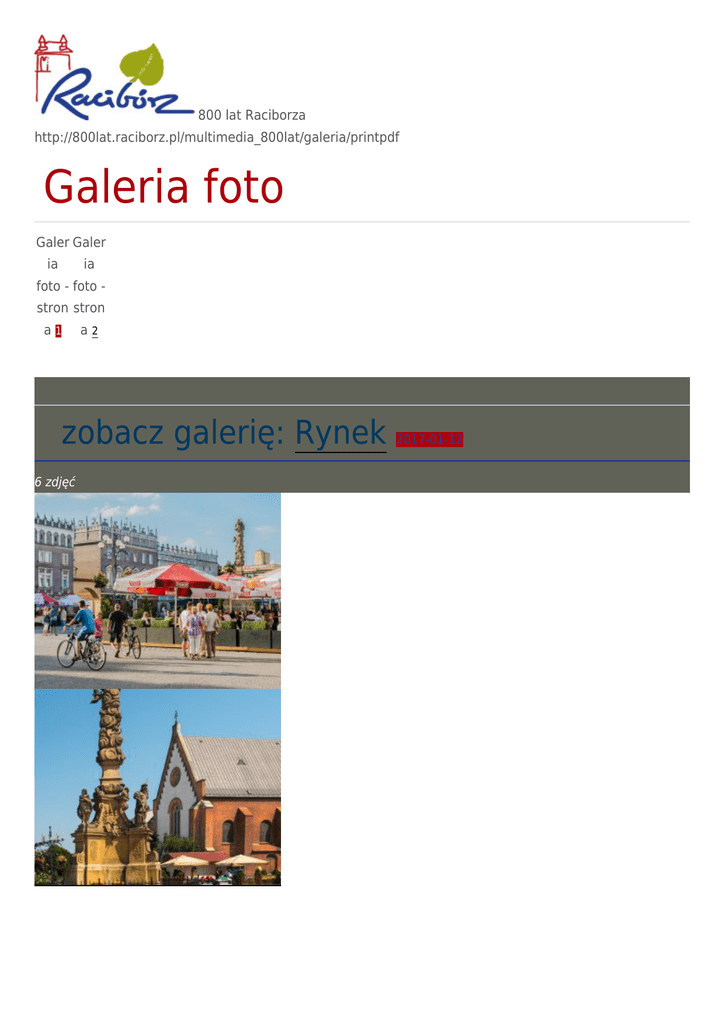 800 lat Raciborza http://800lat.raciborz.pl/multimedia_800lat/galeria/printpdf Galeria foto Galer Galer ia ia foto - foto stron stron a1 a2 zobacz galerię: Rynek 6 zdjęć 2017-01-12 zobacz galerię: Park Zamkowy 11 zdjęć 2017-01-12 zobacz galerię: Park im. Miasta Roth 2017-01-12 7 zdjęć zobacz galerię: Zamek Piastowski 11 zdjęć 2017-01-12 zobacz galerię: Arboretum Bramy Morawskiej 2017-01-12 5 zdjęć zobacz galerię: Zaczarowany Ogród 2017-01-12 12 zdjęć zobacz galerię: Rezerwat leśno-stawowy Łężczok 2017-01-12 10 zdjęć zobacz galerię: Kościół św. Jakuba 4 zdjęć 2017-01-12 zobacz galerię: Kościół Wniebowzięcia Najświętszej Maryi Panny 16 zdjęć 2017-01-12 zobacz galerię: Browar Zamkowy 3 zdjęć Galer Galer ia ia foto - foto stron stron a1 a2 2017-01-12