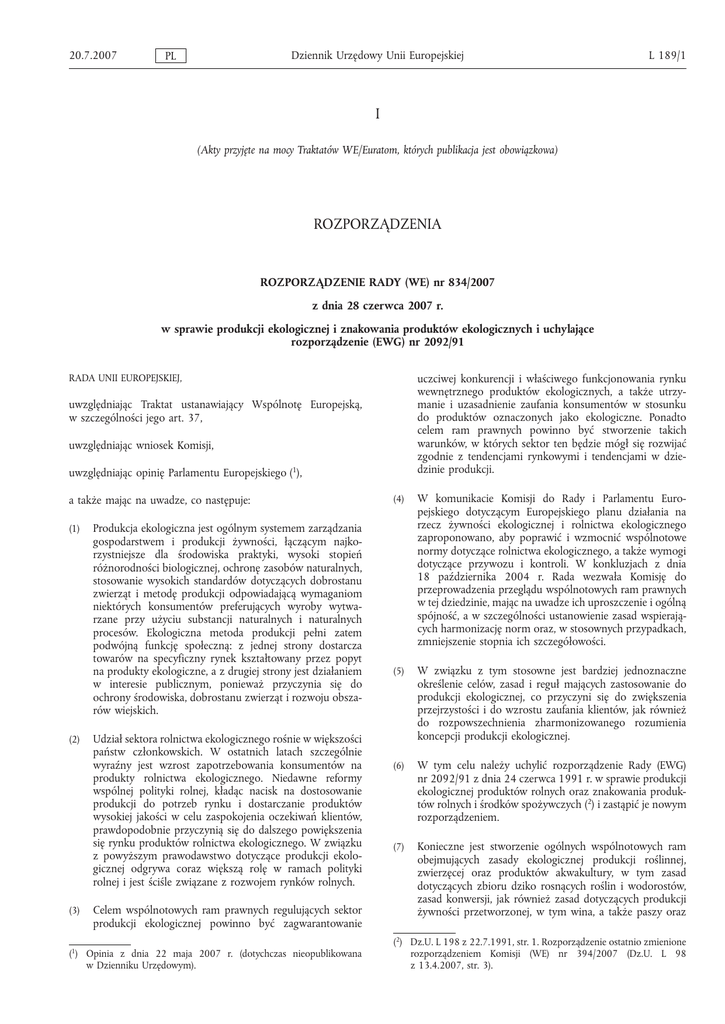 Rozporządzenie Rady nr 834/2007 z dnia 28 czerwca 2007 r. w
