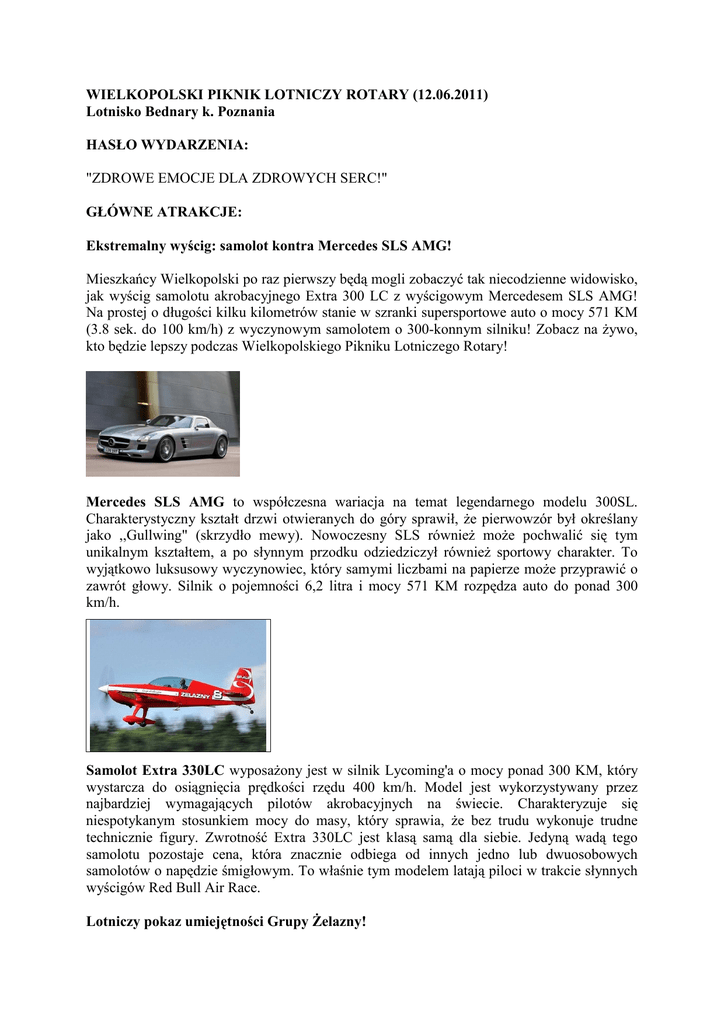 jak wyścig samolotu akrobacyjnego Extra 300 LC z wyścigowym Mercedesem SLS AMG!