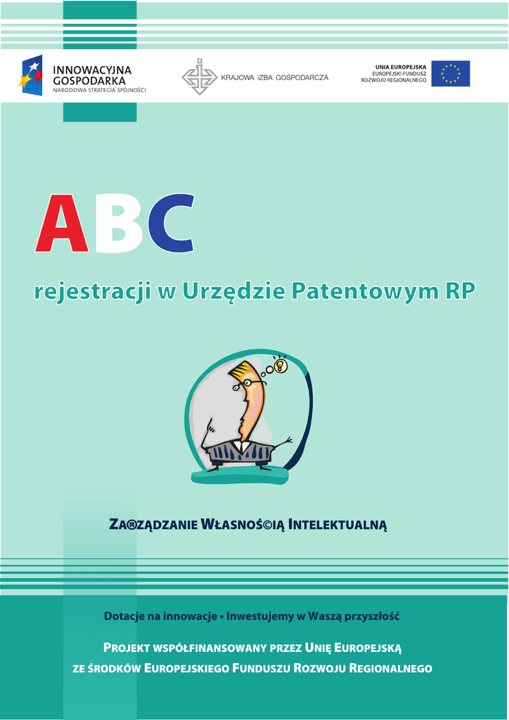 ABC rejestracji w Urzędzie Patentowym RP Dotacje na innowacje • Inwestujemy w Waszą przyszłość PROJEKT WSPÓŁFINANSOWANY PRZEZ UNIĘ EUROPEJSKĄ ZE ŚRODKÓW EUROPEJSKIEGO FUNDUSZU ROZWOJU REGIONALNEGO Opracował: Jakub Sielewiesiuk – Rzecznik Patentowy I. WSTĘP 1) Ochrona wynalazków, znaków towarowych, wzorów przemysłowych – po co mi to? Rejestrowane prawa wyłączne pozwalają uzyskać wyłączność w obrocie gospodarczym na przedmioty objęte rejestracją. Przykładowo, • patent na wynalazek przyznaje monopol na produkty lub sposoby wytwarzania, objęte patentem, • prawo ochronne na znak towarowy pozwala kontrolować użycie tego znaku w obrocie gospodarczym, zaś • rejestracja wzoru przemysłowego pozwala kontrolować obrót produktami, które wyglądają tak, jak zarejestrowany wzór. Tego typu prawa można uzyskać w większości krajów świata. W Polsce organem rozpatrującym zgłoszenia, decydującym o przyznaniu ochrony i prowadzącym odpowiednie rejestry jest Urząd Patentowy Rzeczypospolitej Polskiej. Celem niniejszej broszury jest przybliżenie przedsiębiorcom korzyści płynących z posiadania rejestrowanych praw wyłącznych, a także przedstawienie w przystępny sposób procedury uzyskania takich praw, w odniesieniu do wynalazków, wzorów użytkowych, znaków towarowych i wzorów przemysłowych. Broszurę podzielono na trzy zasadnicze części poświęcone wynalazkom, znakom towarowym i wzorom przemysłowym. Każda część zawiera diagram i zwięzły opis procedury uzyskiwania prawa wyłącznego, wskazuje warunki niezbędne dla uzyskania takiego prawa, informuje o ewentualnych opłatach, wyjaśnia, co powinno zawierać prawidłowo przygotowane zgłoszenie i kończy się sekcją pytań i odpowiedzi. Część dotycząca wynalazków została uzupełniona o podstawowe informacje na temat wzorów użytkowych. Mamy nadzieję, że broszura zachęci odbiorców, zwłaszcza małe i średnie przedsiębiorstwa, do rejestracji swoich praw własności przemysłowej i uczynienia z tego nowoczesnego instrumentu, dającego przewagę konkurencyjną. To bardzo ważne, żeby wiedzieć, jak uzyskiwać prawa wyłączne i nie bać się korzystać z tej możliwości. W krajach rozwiniętych (np. Europa Zachodnia, USA, Japonia, Korea) takie postępowanie jest powszechną praktyką przedsiębiorców. 2) Precyzja wypowiedzi jest ważna Istnieje szeroki wachlarz dorobku niematerialnego, który można objąć rejestrowanymi prawami wyłącznymi. Przedmiotem ochrony może być zarówno rozwiązanie techniczne (np. nowa konstrukcja urządzenia), nowa estetyka przedmiotu czy dorobek rynkowy przedsiębiorcy zbudowany pod określonym znakiem towarowym. Każdemu z tych obszarów odpowiada inne prawo wyłączne. Właściwa w tym zakresie polska ustawa – Prawo własności przemysłowej z dnia 30 czerwca 2000r. (Dz. U. z 2003 r. nr 119, poz. 1117 z późniejszymi zmianami), zwana dalej krótko „PWP” lub „ustawą” przewiduje m.in.: • patenty na wynalazki, • prawa ochronne na wzory użytkowe, • prawa ochronne na znaki towarowe, • prawa z rejestracji wzorów przemysłowych. 1 Opracował: Jakub Sielewiesiuk – Rzecznik Patentowy Opłaty w postępowaniu przed Urzędem Patentowym Rzeczypospolitej Polskiej określa rozporządzenie Rady Ministrów z dnia 26 lutego 2008r. (Dz. U. z 2008 r. nr 41, poz. 241), zwane dalej krótko „rozporządzeniem”. 3) Korzyści z posiadania praw wyłącznych Podstawową korzyścią z posiadania prawa wyłącznego jest wyłączność korzystania z przedmiotu chronionego prawem wyłącznym lub oznaczania produktów i usług chronionym znakiem towarowym w obrocie gospodarczym. Zakres tej wyłączności jest zdefiniowany dla każdego z praw wyłącznych we wspomnianej ustawie PWP. Ustawa daje uprawnionemu środki prawne, np. w postaci roszczeń cywilnych, które stosuje się, gdy inni uczestnicy obrotu naruszają wyłączność płynącą z posiadanego prawa. Poniżej przedstawiono zakres wyłączności, płynący z patentu, prawa ochronnego na znak towarowy i prawa z rejestracji wzoru przemysłowego, a także najważniejsze roszczenia cywilne, które służą uprawnionemu do wyegzekwowania w praktyce swojej wyłączności w obrocie gospodarczym. a) Patent na wynalazek Przez uzyskanie patentu nabywa się prawo wyłącznego korzystania z wynalazku w sposób zarobkowy lub zawodowy na całym obszarze Rzeczypospolitej Polskiej (art. 63 PWP). Zakres przedmiotowy patentu określają zastrzeżenia patentowe, zawarte w opisie patentowym. Czas trwania patentu wynosi 20 lat od daty dokonania zgłoszenia wynalazku w Urzędzie Patentowym (art. 63 PWP). Patent na wynalazek dotyczący sposoby wytwarzania obejmuje przy tym także wytwory uzyskane bezpośrednio tym sposobem (art. 64 PWP). Uprawniony z patentu może zakazać osobie trzeciej, nie mającej jego zgody, korzystania z wynalazku w sposób zarobkowy lub zawodowy, polegający na: • wytwarzaniu, używaniu, oferowaniu, wprowadzaniu do obrotu lub importowaniu dla tych celów produktu będącego przedmiotem wynalazku, lub • stosowaniu sposobu, będącego przedmiotem wynalazku, jak też używaniu, oferowaniu, wprowadzaniu do obrotu lub importowaniu dla tych celów produktów otrzymanych bezpośrednio takim sposobem (art. 66 PWP). Ta ogólna zasada doznaje pewnych wymienionych w ustawie ograniczeń. Przykładowo, • nie narusza się patentu przez korzystanie z wynalazku dotyczącego środków komunikacji i ich części lub urządzeń, które znajdują się na obszarze Rzeczypospolitej Polskiej czasowo, a także przedmiotów, które znajdują się na tym obszarze w komunikacji tranzytowej (tzw. przywilej komunikacyjny); • nie narusza się patentu również przez stosowanie wynalazku do celów badawczych i doświadczalnych, dla dokonania jego oceny, analizy albo nauczania (te i inne wyjątki opisano w art. 69 PWP); • patent nie rozciąga się na produkty uprzednio wprowadzone do obrotu na terytoriu