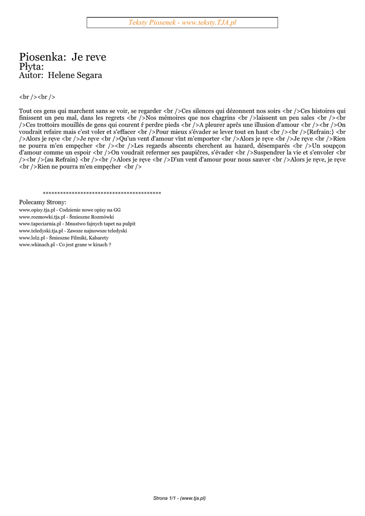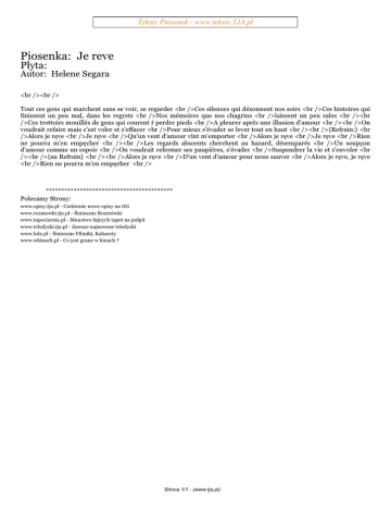 />Alors je ręve <br />Je ręve <br />Qu'un vent d'amour vînt m'emporter <br />Alors je ręve <br />Je ręve <br />Rien