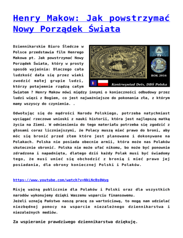 Henry Makow: Jak powstrzymać Nowy Porządek Świata,Nie