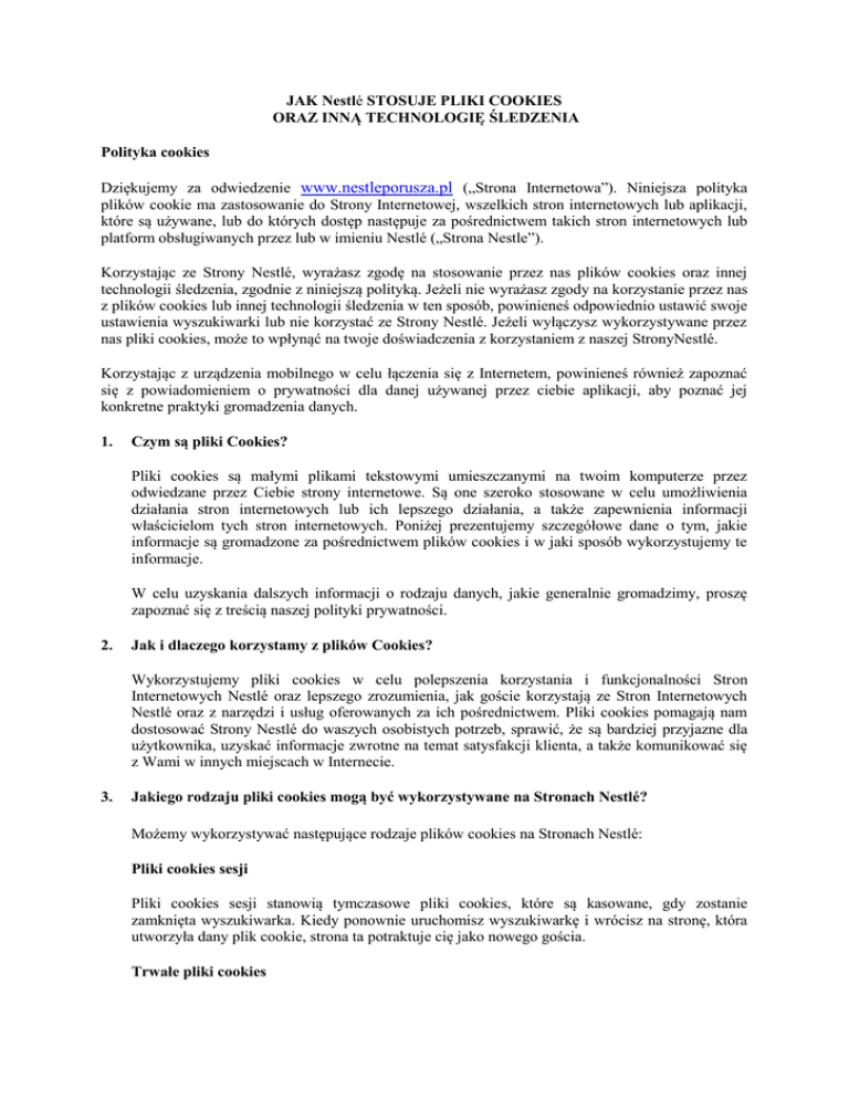 JAK Nestlé STOSUJE PLIKI COOKIES ORAZ