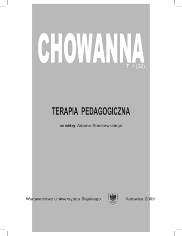 CHOWANNA T. 1 (32) TERAPIA PEDAGOGICZNA pod redakcją Adama Stankowskiego Wydawnictwo Uniwersytetu Śląskiego Katowice 2009 Redaktor naczelny Dr hab. Zbigniew Spendel Recenzenci Prof. zw. dr hab. Krystyna Marzec-Holka, prof. zw. dr hab. Andrzej Radziewicz-Winnicki Rada Naukowa Kolegium Redakcyjne Prof. dr hab. Jerzy Brzeziñski Prof. dr hab. Maria Czerepaniak-Walczak Prof. dr hab. Kazimierz Denek Prof. dr hab. Tadeusz Fr¹ckowiak Prof. dr hab. Adam Fr¹czek Prof. dr hab. Stanis³aw Juszczyk Prof. dr hab. Stanis³aw Kawula Prof. dr hab. Wojciech Kojs Prof. dr hab. Stefan M. Kwiatkowski Prof. dr hab. Zbigniew Kwieciñski Prof. dr hab. Tadeusz Lewowicki Prof. dr hab. Mieczys³aw £obocki Prof. dr hab. Krystyna Marzec-Holka Prof. dr hab. Stefan Mieszalski Prof. dr hab. Aleksander Nalaskowski Prof. dr hab. Czes³aw Nosal Prof. dr hab. Irena Obuchowska Prof. dr hab. Wincenty Okoñ Prof. dr hab. Stanis³aw Palka Prof. dr hab. Karol Poznañski Prof. dr hab. Andrzej Radziewicz-Winnicki Prof. dr hab. Bronis³aw Siemieniecki Prof. dr hab. Tomasz Szkudlarek Prof. dr hab. Bogus³aw liwerski Prof. dr hab. Andrzej de Tchorzewski Prof. dr hab. Janina Wyczesany Prof. dr hab. Teresa Borowska Prof. dr hab. Barbara Ko¿usznik Prof. U dr hab. Katarzyna Popio³ek Prof. U dr hab. Jan M. Stanik Prof. dr hab. Adam Stankowski Dr hab. Agnieszka Stopiñska-Paj¹k Prof. U dr hab. Ewa Syrek Prof. U dr hab. Anna Nowak Sekretarz Redakcji Dr Beata Pitu³a www.chowanna.us.edu.pl Adres Redakcji / Editorial Adress Wydzia³ Pedagogiki i Psychologii Uniwersytetu l¹skiego 40-126 Katowice, ul. M. Gra¿yñskiego 53 tel./fax (032) 258-94-82 e-mail: [email protected] Spis treci Wstêp (Adam Stankowski) . . . . . . . . . . . . . . 5 Artyku³y ADAM STANKOWSKI . 9 O wartociach terapeutycznych w praktyce wychowawczej pedagoga specjalnego . . . . . . . . . . . . . . . . . . . 33 Terapia pedagogiczna wprowadzenie . . . . . . . . . KATARZYNA GABRY EWA WI¥C . 43 Zastosowanie programu ART w pracy z dzieæmi i m³odzie¿¹ agresywn¹ . . . . . . . . . . . . . . . . . . . . . . 55 Pomys³y interpretacyjne a wartoci (na przyk³adzie bani) . . . JOANNA GODAWA, MARTA NIEMIEC KRYSTYNA MOCZIA Nuuuda... w chorobie. Humor sytuacyjny jako antidotum na nudê . 73 ANNA KURZEJA, JOANNA GODAWA Wykorzystanie zooterapii w terapii pedagogicznej na przyk³adzie terapii z udzia³em psa . . . . . . . . . . . . . . . . 85 KRYSTYNA MOCZIA, JOANNA GODAWA Malowane s³owem, gestem, oddechem... czyli koloroterapia na zajêciach terapeutyczno-rewalidacyjnych . . . . . . . . . . 97 DARIUSZ DZIUBA Konferencja jako metoda wspieraj¹ca osi¹ganie niezale¿noci oraz forma wyra¿ania oczekiwañ przez m³odzie¿ niepe³nosprawn¹ intelektualnie . . . . . . . . . . . . . . . . . . . . . 109 STANIS£AW BYRA, MONIKA PARCHOMIUK Optymizm dyspozycjonalny m³odzie¿y niepe³nosprawnej wybrane konteksty . . . . . . . . . . . . . . . . . . . . 115 TADEUSZ WOLAN Uwarunkowania i tendencje do brutalizacji zachowañ dzieci i m³odzie¿y (w okresie transformacji ustrojowej w Polsce) . . . . . . 133 4 Spis Spis treci treci EL¯BIETA WINIEWSKA Realizacja potrzeby kontaktu dziecka niepe³nosprawnego z dzieckiem zdrowym w warunkach szko³y integracyjnej . . . . . . . 155 MARTA NIEMIEC Problem przystosowania dzieci z ADHD do warunków szkolnych (sposoby przeciwdzia³ania odrzuceniu i wykluczeniu spo³ecznemu dziecka innego) . . . . . . . . . . . . . . . . . . 169 BEATA PITU£A, MA£GORZATA KITLIÑSKA-KRÓL Jakoæ i zakres funkcjonowania systemu opieki logopedycznej w ocenach nauczycieli, logopedów i rodziców . . . . . . . . 187 EWA GER Typologia polskich wolontariuszy wed³ug systemu wartoci-mo¿liwoci spójnego referencyjnego uk³adu czynnoci pomagania . . 207 TEFAN VAEK, ALEXANDRA KASTELOVÁ Porównanie systemów kszta³cenia pedagogów specjalnych w polskich i s³owackich szko³ach wy¿szych . . . . . . . . . . . 221 Recenzje Nauczyciel wobec problemów wspó³czesnoci. Red. Beata Pitu³a, Katowice, Wydawnictwo Wy¿szej Szko³y Zarz¹dzania im. gen. Jerzego Ziêtka 2006 (Hanna Gawonicz) . . . . . . . . . . 241 Teresa Wilk: Bukowno miêdzy Ma³opolsk¹ a Górnym l¹skiem. Przestrzeñ egzystencji i aktywizacji spo³ecznoci lokalnej (studium socjopedagogiczne). Kraków, Oficyna Wydawnicza, Impuls 2006 (Piotr Mosiek) . . . . . . . . . . . . . . . . . 247 Owiata polska 19441956. Wybór róde³. Cz. 1: Lata 19441948. [Wybór] Stanis³aw M a u e r s b e r g, Marian W a l c z a k. Warszawa, Polskie Towarzystwo Pedagogiczne 1999; Cz. 2: Lata 19491956. [Wybór] Stanis³aw M a u e r s b e r g, Marian W a l c z a k. Warszawa, Polskie Towarzystwo Pedagogiczne 2000 (Witold Chmielewski) . . 255 Tomasz Niemirowski: O naturze i wspomaganiu rozwoju umys³owego. Lublin, Innovatio Press Wydawnictwo Naukowe Wy¿szej Szko³y Ekonomii i Innowacji 2008 (Ryszard Stachowski) . . . . . 259 Wspomnienia Profesor Jan Poplucz (19322008) . . . . . . . . . . . . 265 Wstêp Próba odczytywania na nowo przes³anek teoretycznych formu³owanych przez wybitnych przedstawicieli pedagogiki specjalnej i stosowanie ich w praktyce pedagogicznej realizowanej w ramach procesów rewalidacji, resocjalizacji, rehabilitacji czy oddzia³ywañ ortodydaktycznych wyznaczy³y obszar poszukiwañ walorów terapeutycznych tkwi¹cych (zgodnie z za³o¿eniem, ¿e istnieje tyle dziedzin wychowania, ile sfer rzeczywistoci, w jakich funkcjonuje cz³owiek) w zró¿nicowanej materii warsztatu pedagogicznego. Za punkt wyjcia przyjêto zakres i treæ pojêcia terapia pedagogiczna zdefiniowanego przez Ottona Lipkowskiego (Resocjalizacja. Warszawa 1976, s. 217). Wed³ug niego do terapii pedagogicznej mo¿na zaliczyæ wszelkie dzia³ania pedagogiczne maj¹ce na celu likwidacjê lub ograniczenie zaburzeñ rozwojowych oraz umo¿liwienie lub u³atwienie najkorzystniejszego rozwoju jednostkom z odchyleniami od normy. Zaliczenie terapii pedagogicznej do grupy procesów znacz¹cych (obok rewalidacji, rehabilitacji i resocjalizacji) dla realizacji procesu w