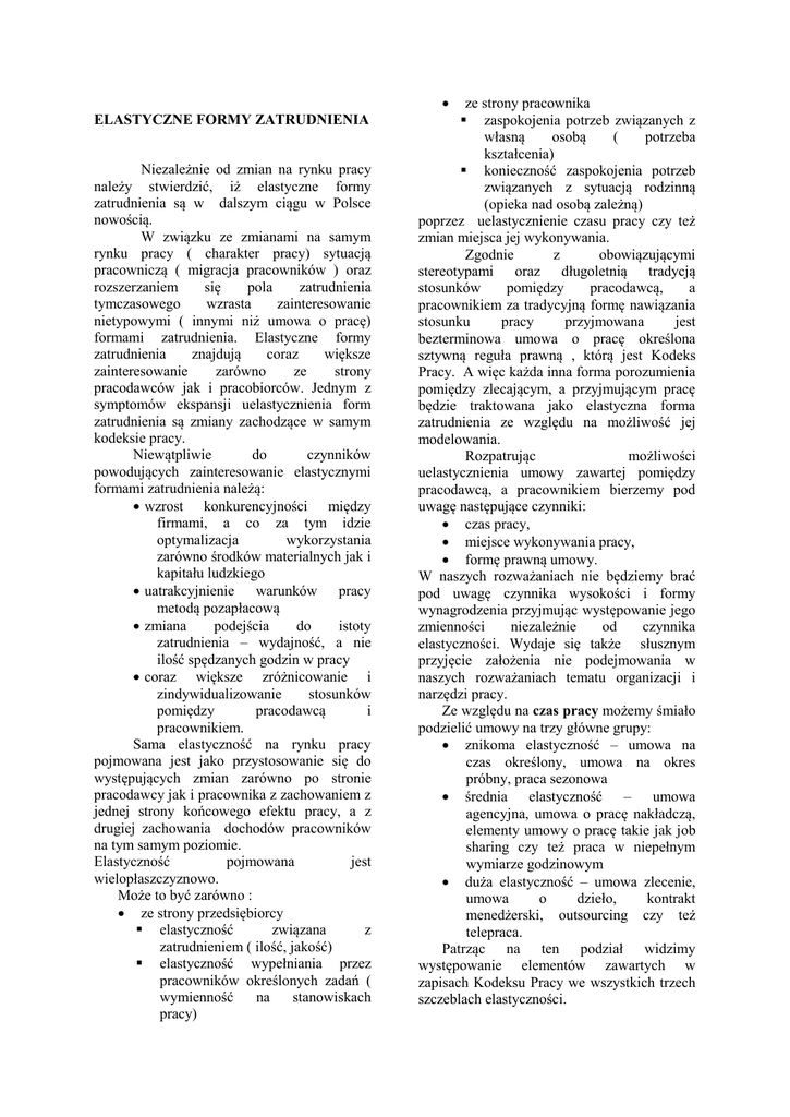 ELASTYCZNE FORMY ZATRUDNIENIA Niezależnie od zmian na