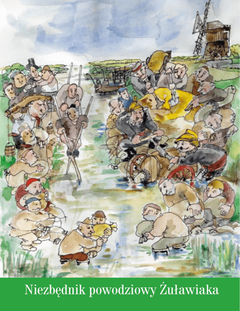 Niezbędnik powodziowy Żuławiaka Niezbędnik powodziowy Żuławiaka Spis treści Związki Wałowe wracają . . . . . . . . . . . . . . . . . . . . . . . . . . . . . . . . . . . . . . . . . . . . . . . 3 Legenda o Strażniku wałowym z Koźlin . . . . . . . . . . . . . . . . . . . . . . . . . . . . . . . . . . . 4 Kurs ochrony przeciwpowodziowej . . . . . . . . . . . . . . . . . . . . . . . . . . . . . . . . . . . . . . 5 Żuławski samorząd wałowy . . . . . . . . . . . . . . . . . . . . . . . . . . . . . . . . . . . . . . . . 5 Historia powodzi na Żuławach . . . . . . . . . . . . . . . . . . . . . . . . . . . . . . . . . . . . . . 6 Powodzi się ludziom na Żuławach czyli o zagrożeniach powodziowych . . . . . . . . 7 Kto i jak powinien pomóc Ci podczas powodzi. . . . . . . . . . . . . . . . . . . . . . . . . . 9 Przygotuj się do powodzi, zanim ona Ciebie zaskoczy . . . . . . . . . . . . . . . . . . . 10 Kiedy woda spokojna . . . . . . . . . . . . . . . . . . . . . . . . . . . . . . . . . . . . . . . . 11 Kiedy zostaje ogłoszony alarm . . . . . . . . . . . . . . . . . . . . . . . . . . . . . . . . . 11 W czasie zagrożenia powodzią . . . . . . . . . . . . . . . . . . . . . . . . . . . . . . . . . . . . . 12 Worki z piaskiem – podstawowe narzędzie do ochrony przeciwpowodziowej . . . . . . . . . . . . . . . . . . . . . . . . . . . . . . . . . . . 14 Po powodzi . . . . . . . . . . . . . . . . . . . . . . . . . . . . . . . . . . . . . . . . . . . . . . . . . . . 16 Wybrane budowle i urządzenia zapewniające współistnienie z wodą . . . . . . . . . . . . . 18 Co możemy zrobić dla rzeki? . . . . . . . . . . . . . . . . . . . . . . . . . . . . . . . . . . . . . . . . . . 58 List otwarty organizacji pozarządowych delty Wisły . . . . . . . . . . . . . . . . . . . . . . . . . . 59 Z archiwum zbiorów dziedzictwa kulturowego delty Wisły . . . . . . . . . . . . . . . . . . . . 61 Niezbędnik powodziowy Żuławiaka Redakcja: Kazimierz Głowacki, Grzegorz Gola, Marek Opitz, Dariusz Piasek Rysunki: Jerzy Domino Fotografie: archiwum Klubu Nowodworskiego, Kosycarz Foto Press, Szymon Klein Współpraca: Lokalna Grupa Działania Żuławy i Mierzeja, Konsulat Królestwa Niderlandów w Gdańsku, firma Trrio Sp. z o. o., Regionalny Zarząd Gospodarki Wodnej w Gdańsku, Zarząd Melioracji i Urządzeń Wodnych Województwa Pomorskiego w Gdańsku, Żegluga Wiślana, Urząd Gminy Cedry Wielkie. Wydawca: Stowarzyszenie Miłośników Nowego Dworu Gdańskiego – Klub Nowodworski ul. Kopernika 17, 82-100 Nowy Dwór Gdański www.klubnowodworski.pl, www.tuga.info.pl Projekt Związki Wałowe wracają Publikacja powstała w ramach projektu Związki Wałowe wracają przy wsparciu udzielonym przez Islandię, Liechtenstein i Norwegię ze środków Mechanizmu Finansowego Europejskiego Obszaru Gospodarczego oraz Norweskiego Mechanizmu Finansowego oraz budżetu Rzeczypospolitej Polskiej w ramach Funduszu dla Organizacji Pozarządowych. Partner projektu: Verein für Europäische Städte-Partnerschaften Hennef e. V. egzemplarz bezpłatny ISBN 978-8-391177-15-0 Nowy Dwór Gdański 2010 Związki Wałowe wracają Żuławy delty Wisły są stale zagrożone nie tylko powodzią, lecz także zatopieniem. Świadomość tego faktu od 600 lat wyrażała się istnieniem Związków Wałowych – najstarszego na ziemiach polskich samorządu terytorialnego. Celem projektu Związki Wałowe wracają jest skupienie zainteresowania i zaangażowania społeczności żuławskiej wokół ochrony przeciwpowodziowej poprzez przywrócenie i odnowienie dawnych tradycji integrowania się i organizowania oraz skorzystanie z doświadczeń przeszłości i współczesnych, w tym także zagranicznych, w zakresie zapobiegania permanentnemu zagrożeniu naruszenia równowagi relacji człowiek-przyroda w delcie Wisły. Wysoka woda na Wiśle jest cyklicznie powtarzającym się, naturalnym stanem. Przynajmniej raz w roku ogłaszany jest w delcie Wisły alarm powodziowy. Każdy Żuławiak powinien wiedzieć, że taka sytuacja jest powodem do wdrożenia przewidywalnych, odpowiedzialnych zachowań zgodnych ze zdrowym rozsądkiem i wiedzą. Panika nie może być dobrym doradcą mieszkańca delty Wisły. Holenderski rolnik spytany o areał swojego gospodarstwa jednym tchem mówi o hektarach łąk, gruntów rolnych i … powierzchni posiadanej wody. Kanały, rowy, zastawki, mosty, mostki, przepusty, pompy są własnością jego albo związku wałowego, do którego należy. Dbanie o ten specyficzny rodzaj własności jest w interesie nie tylko rolników, lecz wszystkich przedsiębiorców, właścicieli domów, mieszkańców – całej sąsiedzkiej wspólnoty. Stawką jest zachowanie stanu posiadania, jakości upraw, a czasami, nawet życie lub zdrowie ludzi i zwierząt. Żuławy podobnie jak Niderlandy są krajem na wodzie. Tak samo, jak Holendrzy jesteśmy zobowiązani dbać o zachowanie równowagi pomiędzy lądem i wodą. Nasza broszurka jest częścią projektu Związki Wałowe wracają otwierającego się na nowe, realne, bardziej praktyczne myślenie o inwestowaniu, życiu i mieszkaniu w delcie Wisły. Grzegorz Gola kierownik projektu Związki Wałowe wracają Legenda o Strażniku wałowym z Koźlin Wały rzeczne na Żuławach pełnią niezwykle ważną funkcję. Nie wolno ich zaniedbać, muszą być utrzymane należycie, wciąż ulepszane i niezwykle pilnie strzeżone. Od ich stanu zależy życie mieszkańców Żuław. Przerwanie wału grozi zalaniem krainy; wówczas woda pochłonie i ludzi i ich majątki. W dawniejszych czasach istniał specjalny urząd głównego wałowego, a podlegali mu strażnicy wałowi. Byli to mężczyźni sumienni, rozsądni i zdecydowani. Tylko tacy mogli strzec ludzi i ich majątków. Ufano im. Takim właśnie człowiekiem był strażnik wałowy z Koźlin. Szczególnie niebezpiecznym okresem dla Żuław była wczesna wiosna, kiedy topniały śniegi i lody. Wtedy wody Wisły i Nogatu podnosiły się znacznie i wszysc