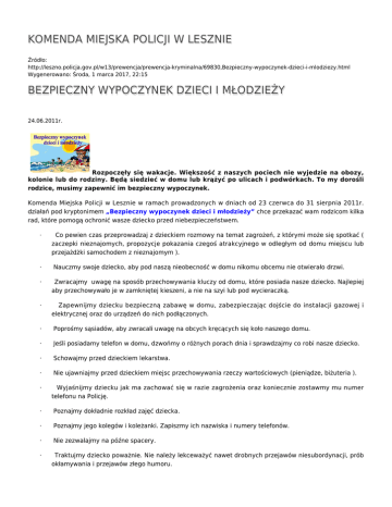 KMP LESZNO BEZPIECZNY WYPOCZYNEK DZIECI I MŁODZIEŻY