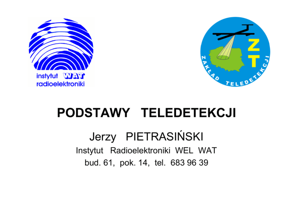 PODSTAWY TELEDETEKCJI Jerzy PIETRASIŃSKI Instytut Radioelektroniki WEL WAT bud. 61, pok. 14, tel. 683 96 39 Cz. I TELEDETEKCJA WIADOMOŚCI WSTĘPNE Definicja, podstawowe pojęcia i klasyfikacje RADAR – istota, zadania, klasyfikacje. TELEDETEKCJA Remote Sensing (ang.) Teledetection (fr.) Tele – daleko (grec.) Detektio – wykrywanie (łac.) TELEDETEKCJA jest działem nauk technicznych zajmującym się pozyskiwaniem informacji o obiektach fizycznych i ich otoczeniu drogą rejestracji, pomiaru i interpretacji obrazów otrzymywanych z sensorów nie będących w bezpośrednim kontakcie z tymi obiektami. XVI Kongres Międzynarodowego Towarzystwa Fotogrametrii i Teledetekcji; Kioto, 1988 SYSTEMY TELEDETEKCYJNE Promieniowanie akustyczne oraz elektromagnetyczne : począwszy od fal metrowych, poprzez mikrofale, podczerwień, zakres promieniowania widzialnego, aż do ultrafioletu. Fale długie Fale bardzo długie Diagnostyka, Defektoskopia 0,1Å 3·107THz terapia rentgenowska 1Å 3·106THz rentgenowska i gamma 10Å 3·105THz 100Å 3·104THz 0,1µm 3·103THz 1µm 300THz 10µm 30THz 0,1mm 3THz 1mm 300GHz 1cm 30GHz 10cm 3GHz 1m 300MHz 10m 30MHz 100m 3MHz 1km 300kHz 10km 30kHz 100km 3kHz Medycyna 10mÅ 3·108THz Technika jądrowa Noktowizja Grzejnictwo Radioastronomia podczerwone 3·109THz Telewizja mikrofalowa Fale średnie 1mÅ indukcyjne Fale krótkie 3·1010THz Spektroskopia Fale ultrakrótkie 0,1mÅ Radiofonia Fale decymetrowe Niektóre dziedziny zastosowań Radiolokacja Fale centymetrowe Fale radiowe Fale milimetrowe Promieniowanie Fale submilimetrowe Mikrofale Światło widzialne Częstotliwość Grzejnictwo Długość fali nadfioletowe Promieniowanie rentgenowskie Promieniowanie gamma Promieniowanie Nazwa rodzaju promieniowania lub pasma Metody Akustyczne teledetekcji Radarowe Optyczne (pasywne/aktywne) (pasywne/aktywne) Radiowe Termowizyjne (pasywne) (pasywne) Opracowane w Instytucie Optoelektroniki WAT przyrządy do zdalnego pomiaru wycieków metanu z sieci przesyłowych Zdalny pomiar wycieków metanu ze śmigłowca. IOE WAT TECHNIKA MIKROFAL PRACE STUDIALNO - DOŚWIADCZALNE NAD OPRACOWANIEM METOD I URZĄDZEŃ DLA POMIARU PRZESTRZENNEGO ROZKŁADU TEMPERATURY W TKANKACH ŻYWYCH ª - opracowanie modelu termografu mikrofalowego na częstotliwość 2,9 GHz ze stabilizacją termiczną regulowanego elektronicznie generatora szumów, ª - opracowanie modelu termografu mikrofalowego na częstotliwość 4,4 GHz, ª - modelowanie i pomiary transmisji promieniowania mikrofalowego w tkankach. SYSTEMY TELEDETEKCYJNE Przykłady czujników : • SONAR - Sound Navigation and Ranging • SODAR - Sound Detection and Ranging • LASER - Light Amplification by Stimulated Emission of Radiation • LADAR – Laser Detection and Ranging • LIDAR – Light Detection and Ranging • RADIO AIDS FOR DEFENCE AND RECONNAISSANCE • RADIO DETECTION AND RANGING NIETOPERZE Są jedną z najbardziej interesujących przy tym mało znanych grup ssaków. Niezwykłą cechą tych ssaków jest zdolność do echolokacji. Zdecydowana większość gatunków nietoperzy w czasie lotu emituje ultradźwięki, które jako echo wracają do ich uszu informując o otoczeniu. Ten niezwykły "radar" został poznany przez naukowców dopiero 50 lat temu. ECHOLOKACJA Echolokacja, sposób ustalania przez niektóre organizmy żywe swego położenia względem otaczających je przedmiotów, polegający na wysyłaniu (do 150 kHz a czasem więcej, są to tzw. piski ultradźwiękowe) i odbieraniu sygnałów akustycznych odbitych od otoczenia. Nietoperze w czasie lotu emitują średnio 20-30 impulsów na sekundę, natomiast gdy zbliżają się do przeszkody ich liczba wzrasta do ok. 200. Potrafią bezbłędnie odróżnić echo własnych dźwięków od innych, nawet o tej samej częstotliwości (pochodzących np. od innych nietoperzy). Odbioru własnych sygnałów nie zakłócają nawet hałasy otoczenia. RADAR Pierwszy polski radar NYSA-A (1953 rok) 600 MHz, szer. imp. 5 μs, częstotl. powt. imp. 100 Hz, moc szczyt. 200 kW, moc śr. 100 W, szer. wiązki az. 12 st. w el. 10 st., szybkość obrotów ant. od 0.5 do 5 obr/min RADAR WOJSKOWE WOJSKOWE CYWILNE CYWILNE RADARY STOSOWANE W MASZYNACH ROBOCZYCH ROZPOZNANIE POLA WALKI - wykrywanie zamaskowanych umocnień rozpoznanie terenu przy wykorzystaniu samolotów bezpilotowych itp. wykrywanie ludzi oraz obiektów w tym niskolecących wykrywanie instalacji podziemnych optymalizacja procesu wydobycia kopalin RADARY W KOMUNIKACJI LOTNICZEJ RADARY W METEOROLOGII RADARY W KOMUNIKACJI MORSKIEJ RADARY W KOMUNIKACJI LĄDOWEJ RADARY W BADANIACH GEOLOGICZNYCH WYKRYWANIE MIN PRZESZUKIWANIE PRZESTRZENI POWIETRZNEJ RADARY W ARCHEOLOGII RADARY W BADANIACH KOSMOSU RADARY W SPRZĘCIE RATUNKOWYM poszukiwanie jam powietrznych przy zawałach ziemi NIEKTÓRE NAZWY ANGLOJĘZYCZNE RADARÓW Meteorological Radar Ground Penetrating Radar (GPR) Through the Wall Penetrating Radar Automotive Radar FIR Radar (FIR - Flight Interception Region) Airport Surveillance Radar ATC Radar (ATC - Air Traffic Control) Primary Radar (PR) Secondary Surveillance Radar (SSR) Coastal Surveillance Radar Land-based Radar Air-borne Radar Maritime Radar Ship-borne Radar Navy Radar Space-based Radar Space-borne Radar Podstawowe zadania radarów: • wykrycie obecności obiektu • pomiar parametrów obiektu: odległość, prędkość, azymut i kąt elewacji • śledzenie trasy obiektu • klasyfikacja, rozpoznanie, identyfikacja obiektu. Zastosowania radarów • Zadania • Zasięg (od małego do pozahoryzontalnego - OTH) • Rodzaj pracy (aktywny lub pasywny, a w tym EoO) • Rodzaj sygnału sondującego • Sposób przetwarzania sygnałów – danych • Platformę na której radar jest zainstalowany – radar lądowy, radar pokładowy morski, radar morski, radar pokładowy ulokowany na statku powietrznym, a w tym i na sterowcu oraz bezpilotowym statku powietrznym – BSL (UAV), radar na pokładzie satelity • Mobilność (radary stacjonarne, transpo