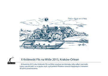 X Królewski Flis na Wiśle 2015, Kraków-Orlean 26 kwietnia 2015 roku Królewski Flis na Wiśle ruszył po raz dziesiąty, żeby odbyć swą tradycyjną „ryzę do pala”, co w języku oryli, czyli polskich flisaków oznacza dopłynięcie z towarem do portu przeznaczenia. Każdego roku, w maju płyniemy z Oświęcimia na 0 km Wisły, lub z Krakowa na 77 km Wisły, do samego Gdańska nad Motławą, przez śluzę w Przegalinie na 935 km Wisły. W tym roku nasz cel jest dużo bardziej odległy, a trasa zupełnie nowa. Przed nami prawie trzy tysiące kilometrów drogami wodnymi Europy do Orleanu we Francji. Tylko raz przeszedł nią nasz wspaniały przyjaciel i znawca rzek, Zbyszek Gąsowski w 1995 roku, na swoje siedmiometrowej łódeczce. Nasza wielka przygoda zaczyna się w Chełmku Gorzowie na 0 km Wisły w piękny, ciepły sobotni dzień, w samo południe. Nasza jednostka to drewniany galar „Szwajcarka” licząca 12 m długości i 3,5 m szerokości pod szyprem Józefem Ratajczakiem, z przednikiem Zygmuntem Ponikiewiczem. Reszta załogi liczy sześć osób. Jej skład i liczebność będzie się zmieniać po drodze. Galar „Szwajcarka” należy do Towarzystwa Na Rzecz Ziemi. Został zbudowany dzięki dotacji Federacji Szwajcarskiej, w ramach projektu „Ratujmy Wiśliska”. Suży promocji idei powrotu człowieka do Wisły i właściwej, naturalnej koegzystencji człowieka z przyrodą żyjącej, naturalnie płynącej rzeki. Po przyjacielsku gości na pokładzie Królewski Flis na Wiśle w pierwszym etapie do Płocka. Płyniemy w towarzystwie drugiej jednostki z jednoosobową załogą-Marek Strzelichowski na ćwierćszkucie „PaniKa”, który również kieruje się „na Orlean”. Marek gustownie i ze znawstwem stylizuje swoją szkutę i swój strój flisacki. Za nami pierwszy odcinek starego szlaku solnego. Dawniej w okolicy śluzy Dwory znajdował się skład solny. Ciągnięto tu trybarką sól z Wieliczki, a właścicielka kopalni, hrabina Dunin Wąsowiczowa dbała o regulacje brzegów. Odcinek górnej Wisły, który należał do zaboru austyjackiego jest najbardziej uregulowany; aż do Połańca będziemy płynąć pomiędzy zielonymi brzegami porośniętymi rosochatą wierzbą i wikliną. Drugiego dnia na śluzie Borek Szlachecki spotykamy naszych znakomitych gości: Marie Noelle i Ivesa Dupont oraz Jeffa, którzy są przedstawicielami Festiwalu Loary. W tym roku gościem honorowym festiwalu jest… rzeka Wisła, przyjechali zatem do Krakowa, żeby pomachać nam na pożegnanie przed podróżą! Przyjechał również Andrzej Stański, który będzie płynął z Warszawy na galarze „Barbara”, oraz Robert Jankowski, sekretarz naszego najważniejszego wiślanego ruchu: Rok Rzeki Wisły 2017. Na łodzi jest również burmistrz Antos z Brzeźnicy. Płyniemy do Tyńca na 63 km. Tam pod starym benedyktyńskim opactwem-należącym do szlaku Cluny-oficjalnie, z przemówieniami, wymianą prezentów i błogosławieństwem braciszków tynieckich rozpoczynamy Flis do Orleanu. Tak nas witają w Tyńcu... Cumę odebrał wszędobylski Hermes...Widzę wiele przyjaznych twarzy! Konsul francuski, Monsieu Thierry Guichoux i Pani Sołtys Zofia Pyla z Piekar, czyli z przeciwległego brzegu rzeki...a obok Księdza Reportera strażak , Marek Sobieraj, który zorganizował całą imprezę powitalną. Włącznie z oprawą muzyczną-grała Orkiestra Strażacka z Tyńca! Do Krakowa, pod Wawel 77 km dobijamy o 14:30. Wieczorem, w Fundacji Pamoja Ewa Ciepielewska przedstawia swój autorski projekt artystyczny, który jest zasadniczą częścią Flisu. W XXI wieku współcześni flisacy wożą na swych galarach sztukę i artystów, komunikują ze sobą różne środowiska i prądy i czerpiąc z natury wzbogacają kulturę. Ale w jakim celu? Wykształcony w ten sposób człowiek kulturalny, będąc świadomym pochodzenia swego bogactwa, będzie wspierał i chronił ten za darmo otrzymany skarb jakim jest naturalne środowisko i jego zasoby. Howgh! Miejscowi i zagraniczni goście (nie tylko ludzie) zaszczycili nasze spotkanie w Księgarni/Wystawie Pamoja. Pokazywalismy również film nakrecony przez Grzegorza Wierzchowskiego w trakcie Flisu w 2010 roku, kiedy na drugiej, francuskiej łodzi „La Cygne” podróżował z rodziną jej budowniczy Allan Lacroix z Associacion Boutavant w Tour. Bardzo wtedy padało i mieliśmy różne przygody, o których ten film opowiada. Dwa kolejne dni spędziliśmy w Krakowie w oczekiwaniu na...deszcz lub…konieczność wynajęcia dźwigu. Do najtrudniejszych momentów przeprawy na górnej Wiśle należy bowiem stopień Przewóz na 90 km. Nieudany projekt kaskady Wisły z okresu PRL-u, dziś jest zmartwieniem wszystkich pływających jednostkami większymi niż kajaki. Co roku modlimy się o cud i cud się znowu zdarzył. We wtorek zaczęło padać tak mocno, że poziom wody znacznie się podniósł i w środę galar wypłynął ze śluzy Dąbie-80 km-o 10 rano, a o 13 przeszedł gładko przez Przewóz i świat stanął przed nami otworem! Tę noc szczęśliwi flisacy spędzili w Niepołomicach, u Zygmunta, na setce (100 km). 2 maja „Szwajcarka” dopływa do Sandomierza na 268 km, mijając po drodze Opatowiec i elektrownię w Połańcu. Sandomierz, przepieknie położony na lessowych wzgórzach jest jednym z najstarszych polskich miast. Za Sandomierzem, z prawego brzegu uchodzi do Wisły rzeka San, jej największy podkarpacki dopływ. A tuż nad ujściem do Sanu rzeki Tanwi, leży Ulanów, Stolica Flisactwa, gdzie właśnie tego dnia otwarto Muzeum Flisactwa... Zatrzymujemy się na dwa dni w Basonii na 313km. To wieś położona na prawym brzegu Wisły, gdzie ożyły dawne tradycje szkutnicze; najpierw Przemek Pasek z Fundacji Ja Wisła namówił starych szkutników do zbudowania tradycyjnej dla tych okolic krypy, służącej do przewozu bydła na pastwiska położone na drugim brzegu. Wspólnymi siłami powstały dwie takie jednostki. Teraz buduje tutaj łodzie m