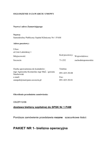 PAKIET NR 1- bielizna operacyjna - Samodzielny Publiczny Szpital