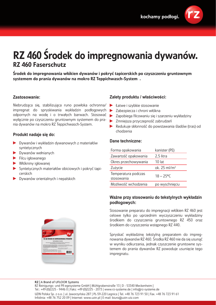 RZ 460 Środek do impregnowania dywanów.
