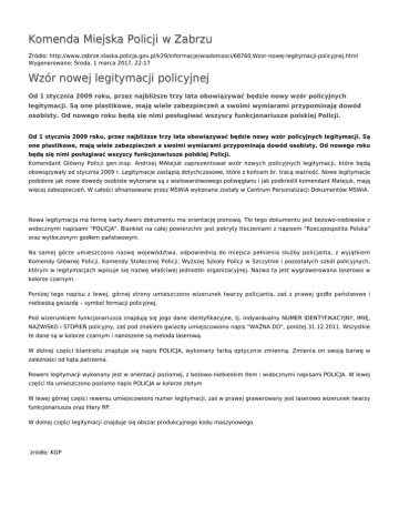 Komenda Miejska Policji w Zabrzu Wzór nowej legitymacji policyjnej