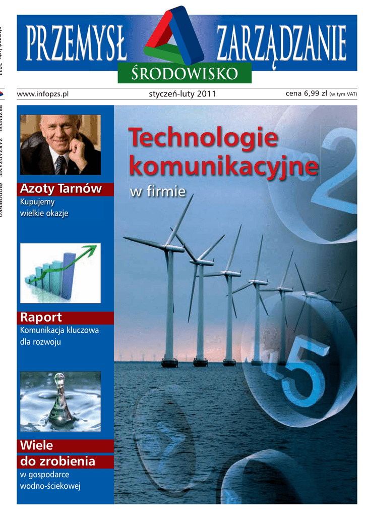 ŚRODOWISKO www.infopzs.pl stycze-luty 2011 cena 6,99 z (w tym VAT) Technologie komunikacyjne Azoty Tarnów Kupujemy wielkie okazje Raport Komunikacja kluczowa dla rozwoju Wiele do zrobienia w gospodarce wodno-ciekowej w rmie BIOGRADEX R Holding Sp. z o.o. Nowatorska technologia „BIOGRADEX®” - próżniowego odgazowania mieszaniny osadu umożliwia : - powiększenie przepustowości istniejących oczyszczalni ścieków, - przy nowych realizacjach, budowę dwukrotnie mniejszych komór osadu czynnego oraz polepszenie sedymentacji, - oszczędności inwestycyjne i eksploatacyjne, 20÷30% przy budowie nowych obiektów, natomiast do 60% przy modernizacjach. Laureat GreenEvo XXXB[PUZUBSOPXQM UFDIOPMPHJFLUÌSFUXPS[ QS[ZT[Pv¿ 8JFMPMFUOJFEPvXJBED[FOJFJLSFPXBOJFOBKOPXT[ZDIUSFOEÌX XQS[FNZvMFDIFNJD[OZNXZUZD[BESPHÃTUBCJMOFHPSP[XPKV (SVQZ,BQJUBPXFK"[PUZ5BSOÌXSFBMJ[PXBOFHPXTQPTÌC PEQPXJFE[JBMOZTQPFD[OJFX[HPE[JF[FvSPEPXJTLJFNOBUVSBMOZN Na pocztek od redakcji ŚRODOWISKO Piotr Krakowiak – dyrektor wydawnictwa [email protected] Marta Szczepanik – redaktor naczelna [email protected] Julianna Jachacy – sekretarz redakcji [email protected] Jacek Markowski – szef projektu [email protected] Renata Wojciechowska – marketing [email protected] Fot. na okadce: berent, sxc.hu; clix, sxc.hu; svilen001, sxc.hu Piotr Zagórowski – opracowanie graczne i DTP [email protected] Beata Rokicka – korekta Wydawca InfoMarket Sp. z o.o. Redakcja Przemys Zarzdzanie rodowisko ul. Trylogii 2/16 lok. 50, 01-982 Warszawa tel. 22 835 19 17, fax: 22 499 44 17 www.infopzs.pl Jeli nie zaznaczono inaczej, wszystkie materiay ilustracyjne pochodz z serwisu sxc.hu. W przygotowaniu numeru wykorzystano materiay i opracowania prasowe rm. Redakcja nie ponosi odpowiedzialnoci za tre oraz przekaz reklam. Wydawnictwa InfoMarket maj cha- EFEKTYWNO PRZEDE WSZYSTKIM Nowy rok to nowe postanowienia. My postanowilimy pomóc je Pastwu podj. Zacznijmy od poprawy efektywnoci w rmie. Nie tylko efektywnoci energetycznej. Technologie informacyjne i komunikacyjne (ICT) wspieraj kady rodzaj zarzdzania – wszystkimi elementami dziaalnoci organizacji, pracuj dla utrzymania cigoci biznesu. Usprawniaj przepyw danych pomidzy pracownikami, pracownikami a zarzdem oraz midzy rm a jej zewntrznymi partnerami. W zwizku z tym s take idealnym sposobem na realizacj polityki odpowiedzialnoci spoecznej. Znaczenie ICT coraz bardziej ronie: w raporcie w numerze sygnalnym PZ pisalimy, e s postrzegane jako jeden z najwaniejszych dla gospodarki jutra sektorów. Tymczasem w Polsce wci spotykaj si ze zbyt maym zainteresowaniem. Na 133 kraje przebadane w okresie 2009-2010 przez wiatowe Forum Ekonomiczne do corocznego raportu na temat technologii informacyjnych uplasowalimy si na 65 miejscu za takimi krajami jak Wietnam, Rumunia, RPA i Azerbejdan, które znalazy si w poprzedzajcej nas dziesitce. Warto jednak powzi postanowienie wdroenia systemu wspomagajcego komunikacj, przepyw informacji, poniewa korzyci z tego pynce s niepodwaalne i przewyszaj koszty, jakie si na przeznaczy. Wracajc do efektywnoci energetycznej, powinnimy zastanowi si nad wprowadzeniem w ycie organizacji systemu zarzdzania energi. Taki system take opiera si na technologiach informacyjnych, ale równie istotne s w nim nasze wasne przyzwyczajenia. Zapraszam do lektury obszernych artykuów ekspertów z Det Norske Veritas i LRQA. Pomylmy te o skorzystaniu z pomocy nansowej i merytorycznej na rozwój naszych technologii, wdroenie innych rozwiza i systemów zarzdzania. W ofercie wielu instytucji dostpne s kredyty, dotacje, specjalistyczne wsparcie. Podnosz konkurencyjno rmy, odróniaj nas od innych dziki sprawniejszym wdroeniom, ochronie informacji, wzorów. W niniejszym numerze PZ moemy przeczyta o caym szeregu takich usug, od kredytu technologicznego, przez dotacje na certykacj systemów zarzdzania, po warsztaty na temat oryginalnego designu przemysowego. A jak przebiegaa realizacja powzitych wczeniej postanowie? W gospodarce wodno-ciekowej projekty maj si na ukoczeniu, cho „wiele jest jeszcze do zrobienia”, jak mówi Bartomiej Kirsten z NFO iGW. Podsumowania dziaalnoci towarzysz take jubileuszom, o których wiele w tym numerze, chociaby 65-lecie Gównego Instytutu Górnictwa, 250-lecie Lloyd’s Register i 25-lecie LRQA. rakter informacyjny i nie s ofert handlow w rozumieniu prawa. Redakcja zastrzega sobie prawo do bdów wynikajcych z opracowania, interpretacji technicznej oraz skadu i druku. Zapraszam do lektury i podejmowania mdrych postanowie. InfoMarket nie ponosi odpowiedzialnoci za szkody wynikajce z niewaciwego wykorzystania danych, opracowa oraz materiaów zamieszczonych w wydawnictwach spóki. Przemys Zarzdzanie rodowisko Marta Szczepanik Redaktor naczelna stycze-luty 2011 3 rada programowa Tomasz Gasiski Wiceprezes Zarzdu, Dyrektor ds. Certykacji Det Norske Veritas Business Assurance Poland Sp. z o.o. Przewodniczcy Rady Programowej www.dnv.com.pl Wodzimierz Biel Country Manager w Norwegii Det Norske Veritas Honorowy Przewodniczcy Rady Programowej Det Norske Veritas (DNV) jest niezalen fundacj zaoon w 1864 r., z siedzib w Oslo w Norwegii. DNV naley do wiodcych na wiecie organizacji wspierajcych zrównowaony rozwój, zgodnie z przyjt wizj: Globalne oddziaywanie na rzecz bezpiecznej i zrównowaonej przyszoci. Oferuje usugi zwizane ze wsparciem organizacji w budowaniu zrównowaonego rozwoju, CSR, oraz w doskonaleniu usug i ocenie odpornoci na defraudacj i korupcj. Jadwiga Ronikier Dyrektor dziau rodowisko i Przemys WS Atkins-Polska Sp. z o.o. www.wsatkins.pl Jadwiga Ronikier kieruje multidyscyplinarnym zespoem ekspertów, którzy wiadcz kompleksowe usugi rodowiskowe, inynieryjno-techniczne oraz zarzdzania, w celu wsparcia przedsibiorców. Dostp grupy Atkins do midzynarodowego know-how umoliwia udzielanie efektywnych ekonomicznie i zgodnych z obowizujcym prawodawstwem porad, dotyczcych rozwizywania istotnych zagadnie w Polsce i innych krajach Europy. dr Krystyna Stephens Prezes Zarzdu, Dyre