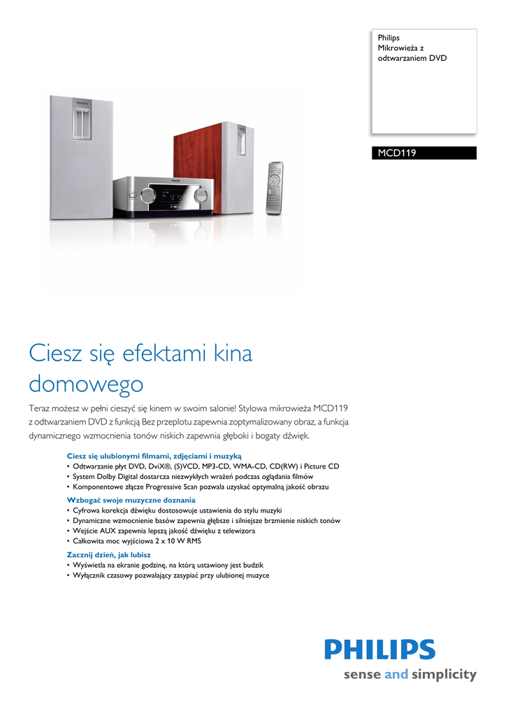 MCD119/12 Philips Mikrowieża z odtwarzaniem DVD