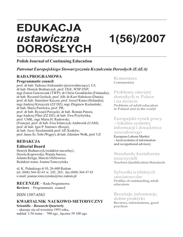 EDUKACJA ustawiczna DOROS£YCH 1(56)/2007