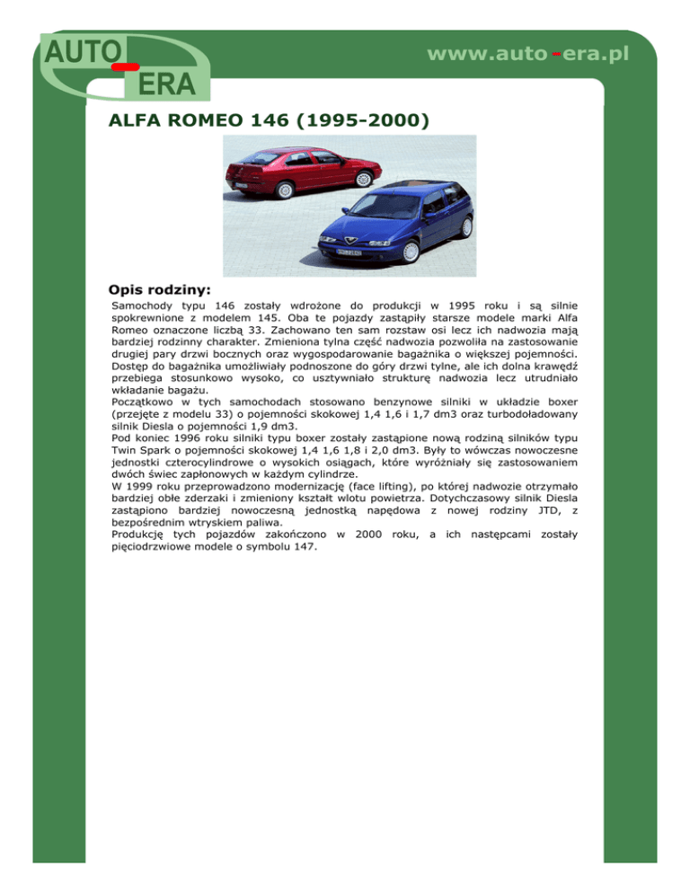 Opis rodziny: ALFA ROMEO 146. - AUTO-ERA