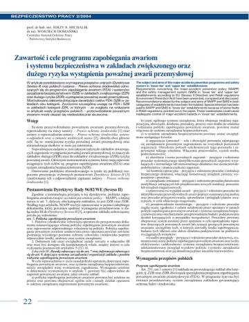 [4] Michalik J. S., Domański W. Program zapobiegania awariom i system zarządzania bezpieczeństwem w zakładach zwiększonego oraz dużego ryzyka poważnej