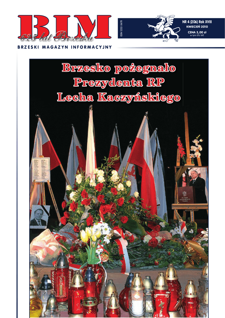 NR 4 (206) Rok XVIII KWIECIEŃ 2010 CENA 3,00 zł w tym 0% VAT Brzesko pożegnało Prezydenta RP lecha Kaczyńskiego Wyrazy głębokiego współczucia dla rodzin 96 ofiar katastrofy lotniczej pod Smoleńskiem Będziemy pamiętać... Burmistrz Brzeska Grzegorz Wawryka Przewodniczący Rady Miejskiej Krzysztof Ojczyk Rada Miejska Mieszkańcy Brzeska wspomnienie BRZESKI MAGAZYN INFORMACYJNY kwiecień 2010 Księdzu Stanisławowi Markowi – AD MEMORIAM 24 marca na placu przy Kościele pod wezwaniem Matki Bożej Częstochowskiej w Brzesku – Słotwinie został pochowany Ksiądz Proboszcz tej parafii śp. ksiądz Stanisław Marek. Na uroczystości żałobne licznie przybyli wierni nie tylko tej parafii, ale też tych, w których pełnił posługę duszpasterską. Rodzina, liczne poczty sztandarowe straży pożarnej, orkiestra z Wojnicza wespół z rzeszą wiernych, kapłanów – przyjaciół zmarłego o godz. 15.00 spotkały się w Kościele na nabożeństwie żałobnym, któremu przewodniczył ksiądz biskup Wiktor Skworc – ordynariusz diecezji tarnowskiej. Zebrani na tej smutnej uroczystości z wielką uwagą wysłuchali homilii Księdza Biskupa o zmarłym nagle w dniu 21 marca 2010 roku. Jego drodze do kapłaństwa i niezwykłej posłudze duszpasterskiej, nacechowanej wielką pobożnością, skromnością, życzliwością, oddaniu i powierzeniu spraw i problemów ludzkich Matce Bożej Częstochowskiej. Jak mówił w swej homilii biskup Wiktor Skworc – „zmarły nie przywiązywał wagi do dóbr materialnych”. Było to widoczne nie tylko w Jego niezwykle skromnym życiu kapłańskim i osobistym. Wszyscy pamiętamy białego malucha -126p, którym przez większość swojej służby i pracy duszpasterskiej się posługiwał. Czynnie uczestniczył w pielgrzymkach śp Wielkiego Papieża Polaka Jana Pawła II do Ojczyzny. Organizował i przygotowywał duchowo wiernych do tych niezapomnianych spotkań. Przywiązywał dużą wagę do kształtowania patriotycznych postaw wśród młodzieży. Nauczał i pouczał młode pokolenia brzeszczan. W dziele krzewienia patriotyzmu ma wielkie zasługi. Nie znosił próżniactwa i chuligaństwa wśród młodzieży. Walczył z tymi negatywnymi cechami, aż do ostatnich swoich sił. Spotykały go też za to przykrości zawiedzionych rodziców. Bardzo to przeżywał. Był nieugięty i konsekwentny w kształtowaniu prawdziwych wzorców wychowawczych. Niejednego młodego przywracał społeczeństwu. To też godna uwagi zasługa Księdza Stanisława. Posiadając niezwykłą wiedzę potrafił też świetnie pisać. W prasie katolickiej tak mu bardzo bliskiej, pozostawił bardzo wiele rozpraw i artykułów, które czytane były w całym kraju. Jan Gwizdała: Moja znajomość z Księdzem Stanisławem datuje się od początku Jego pobytu w Kościele p.w. Matki Bożej Częstochowskiej na Słotwinie, od 1994 roku. Spotkaliśmy się u księdza Dziekana Zygmunta Bochenka w pierwszych dniach września 1994 roku podczas omawiania programu uroczystości 55 rocznicy wybuchu II wojny światowej i zbombardowania transportu kolejowego z ludnością cywilną na Słotwinie. Dla mieszkańców Brzeska ta rocznica ma do dzisiaj bardzo ważne znaczenie i kolejne jej obchody świadczą dobrze o pamięci dla Tych, którzy ponieśli śmierć u progu jednej z najkrwawszych wojen światowych. Nie zapomnę jego niezwykłej energii, staranności i pasji, z jaką oddawał się organizacji tych upamiętniających martyrologię naszego narodu wydarzeń. Prócz doskonałej znajomości pisma świętego i historii kościoła katolickiego był wyśmienitym znawcą historii ojczystej. W trakcie kazań często przytaczał różne wydarzenia historyczne, obrazujące walkę o niepodległość i suwerenność naszego narodu. Marcin Ciurej: Księdza Stanisława zapamiętam tylko z dobrej strony. Dla mnie był człowiekiem dużej wiary, wielkim patriotą. Próbował w każdym człowieku zaszczepić choć trochę tych dobrych cech, jakie On posiadał. Nam, lektorom, nigdy nie stawał na drodze, zawsze mogliśmy liczyć na jego pomoc. Do mszy jakoś specjalnie nie byliśmy przygotowywani. Oczywiście wszyscy byliśmy wysłani przez Księdza Stanisława na odpowiednie kursy. Ksiądz dawał nam dużo swobody we współpracy z nim. Oczywiście jeśli zaczynaliśmy (jak to młodzi chłopcy) zachowywać się nieodpowiednio, zwracał nam uwagę i mówił, co robimy źle. Zawsze, jeśli mieliśmy jakiś wspólny problem do rozwiązania, wysłuchał naszego zdania, naszych argumentów, powiedział, co On o tym wszystkim sądzi i dochodziliśmy do wspólnych wniosków. Z księdzem Stanisławem mogliśmy porozmawiać o wszystkim. Zawsze miał dla nas czas. Ja osobiście lubiłem z nim rozmawiać o sporcie (Jak wiemy, był On wielkim kibicem piłki nożnej i innych dyscyplin sportowych). Od kiedy zostałem ministrantem, a później lektorem, proboszczem naszej parafii był ksiądz Stanisław. Jak na razie nie wyobrażam sobie mojej posługi bez niego. Jestem pewny, że mnie jako lektorowi będzie się bardzo trudno przystosować do następcy księdza Stanisława. Ja od księdza Stanisława nauczyłem się inaczej patrzeć na nasze Miasto, na naszą Ojczyznę. Wydaje mi się, że jego dążenie do tego, aby wszyscy w Parafii z szacunkiem traktowali Polskę i naszą „małą ojczyznę” Brzesko, dało bardzo dużo. Wiem to po sobie. Maria Marek: Ksiądz Stanisław był niezwykłą osobowością. Przeszedł przez życie cicho i bez rozgłosu, czyniąc dobro. Żył bardzo skromnie, nigdy nie przywiązywał się do rzeczy materialnych. Przez wiele lat jeździł swoim małym fiacikiem, nazywając go BMW, czyli bardzo mały wóz. Nigdy nie wyjeżdżał na urlop, nie gromadził żadnych dóbr. Kochał książki, szczególnie te poświęcone historii i literaturze i miał w tych dziedzinach ogromną wiedzę. Zawsze był oddany sprawom parafii i potrzebującym. Kościół pozostawił piękny – „perełkę w architekturz