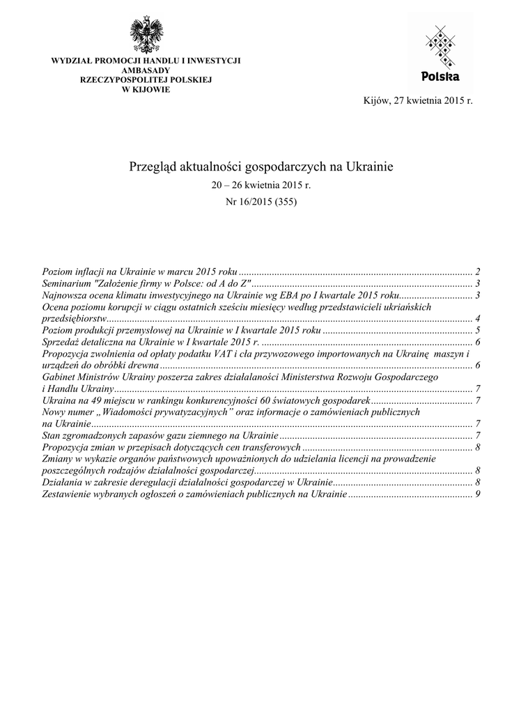przeglґd aktualnoњci gospodarczych na ukrainie