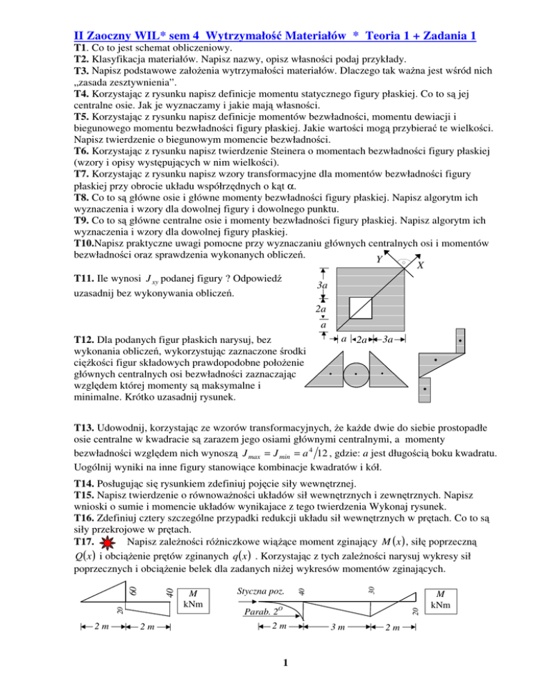 II Zaoczny WIL* sem 4 Wytrzymałość Materiałów * Teoria 1 +
