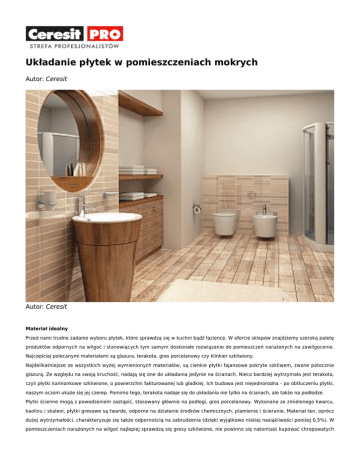 Układanie płytek w pomieszczeniach mokrych Autor: Ceresit Autor: Ceresit Materiał idealny Przed nami trudne zadanie wyboru płytek, które sprawdzą się w kuchni bądź łazience. W ofercie sklepów znajdziemy szeroką paletę produktów odpornych na wilgoć i stanowiących tym samym doskonałe rozwiązanie do pomieszczeń narażonych na zawilgocenie. Najczęściej polecanymi materiałami są glazura, terakota, gres porcelanowy czy klinkier szkliwiony. Najdelikatniejsze ze wszystkich wyżej wymienionych materiałów, są cienkie płytki fajansowe pokryte szkliwem, zwane potocznie glazurą. Ze względu na swoją kruchość, nadają się one do układania jedynie na ścianach. Nieco bardziej wytrzymała jest terakota, czyli płytki kamionkowe szkliwione, o powierzchni fakturowanej lub gładkiej. Ich budowa jest niejednorodna - po obtłuczeniu płytki, naszym oczom ukaże się jej czerep. Pomimo tego, terakota nadaje się do układania nie tylko na ścianach, ale także na podłodze. Płytki ścienne mogą z powodzeniem zastąpić, stosowany głównie na podłogi, gres porcelanowy. Wykonane ze zmielonego kwarcu, kaolinu i skaleni, płytki gresowe są twarde, odporne na działanie środków chemicznych, plamienie i ścieranie. Materiał ten, oprócz dużej wytrzymałości, charakteryzuje się także odpornością na zabrudzenia (dzięki wyjątkowo niskiej nasiąkliwości poniżej 0,5%). W pomieszczeniach narażonych na wilgoć najlepiej sprawdzą się gresy szkliwione, nie powinno się natomiast kupować chropowatych płytek wykonanych z gresu technicznego, które zatrzymują brud i ulegają procesowi szarzenia. W strefach narażonych na zawilgocenie nie należy także stosować gresu polerowanego, który jest nieodporny na plamienie ze względu na brak impregnacji. Bardzo twardym materiałem o wysokich parametrach technicznych jest klinkier szkliwiony. Występuje on w różnych kolorach, a rustykalna estetyka płytki charakteryzuje się nierównościami w wymiarach. Klinkier jest materiałem odpowiednim do stosowania zarówno na ściany, jak i na podłogi. Pamiętajmy, aby kupić o 5-15% więcej materiału niż to wynika z naszych obliczeń. Zapas ten przyda się podczas konstruowania łączeń prostych, naprzemiennych i skośnych Najczęściej stosowany jest układ prosty, w którym fugi są równoległe do krawędzi płaszczyzny i przecinają się, tworząc krzyże. Układ naprzemienny (mieszany) polega na łączeniu dużych płytek z małymi, co daje efekt przesunięcia w obu kierunkach. W przypadku łączenia skośnego (karo), siatka fug ustawiona jest pod kątem 45° w stosunku do podłoża. Jak układać płytki? Zanim rozpoczniemy układanie płytek, musimy zadbać, aby podłoże zostało oczyszczone z resztek farby, kurzu i brudu. Powinno być ono mocne i równe, dlatego też trzeba skuć ewentualne luźne fragmenty tynku (obtłukujemy je delikatnie młotkiem i usuwamy za pomocą twardej szczotki luźny materiał), a ubytki należy wypełnić zaprawą cementową. Nie musimy odrywać starej glazury, jeżeli chcemy położyć nową. W przypadku podłoża posiadającego odpowiednią przyczepność, wystarczy dokładne oczyszczenie starych płytek i zagruntowanie ich gruntem specjalnym Ceresit CN 94 lub CT 19. Następnie możemy przystąpić do klejenia nowej okładziny ceramicznej przy użyciu zapraw klejących, np. Ceresit CM 22, która gwarantuje doskonały rozpływ, prawie do 95 procent pełnej powierzchni pod płytką i jest odporna na odkształcenia – zapewnia Rafał Stachera specjalista ds. technicznych Dział Zastosowań Henkel Polska. Jeśli planujemy układać płytki na chłonnym podłożu, takim jak: beton, beton komórkowy, gazobeton, jastrychy, tynk cementowy lub cementowo-wapienny, powierzchnię należy dodatkowo zagruntować gruntem głęboko penetrującym Ceresit CT 17. Grunt nanosimy przy użyciu pędzla lub wałka. Aby mieć pewność, że zaprawa klejąca pod płytką będzie posiadała praktycznie 100% rozpływu należy dobrać odpowiednią konsystencję materiału oraz odpowiednią pacę zębatą (wielkość pacy jest uzależniona od rozmiaru płytek) jak również należy zastosować tzw. metodę kombinowaną – polegającą na dodatkowym nałożeniu cienkiej warstwy zaprawy klejącej na spodnią część płytki. Przyklejenie płytek w taki sposób pozwoli nam na uniknięcie powstania ewentualnych spękań jak również zagwarantuje odpowiednią przyczepność zaprawy klejącej do płytek. Zaprawę klejącą nakładamy na odpowiednio przygotowane podłoże używając gładkiej strony pacy, nanosząc na podłoże zaprawę klejową. Rozprowadzamy ją stroną z zębami pamiętając, że im większa płytka, tym większe powinny być zęby pacy. Pamiętajmy, że nałożona na podłoże zaprawa może szybko wysychać (w przypadku wysokich temperatur), dlatego najlepiej nałożyć ją na niewielką powierzchnię. Zaschniętej zaprawie nie da się przywrócić jej właściwości klejących – trzeba ją wówczas zeskrobać i nałożyć nową warstwę. Aby pierwszy rząd płytek miał się na czym oprzeć (w przypadku klejenia przy użyciu zapraw tzw. „podstawowych”), przed rozpoczęciem klejenia do ściany mocujemy długą łatę. Układanie płytek zaczynamy od dołu, od drugiego rzędu (pierwszy ułożymy po przyklejeniu terakoty). Jeśli jako pierwszą zamierzamy przykleić płytkę pełną, pracę zaczynamy od narożnika. Jeżeli natomiast na krańcach podłoża mają znaleźć się płytki docinane, wtedy układanie zaczynamy i kończymy na pełnej płytce. Płytki docinane mocujemy dopiero, wtedy kiedy zastosujemy ewentualne listwy wykończeniowe. Aby utrzymać jednakową szerokość spoin, między płytki wstawiamy krzyżyki dystansowe. W przypadku zastosowania np. zaprawy klejącej Ceresit CM 22 – nawet w przypadku dużych i ciężkich płytek zastosowanie tzw. podparcia oraz krzyżyków dystansowych jest zbyteczne. W przypadku układania płytek n