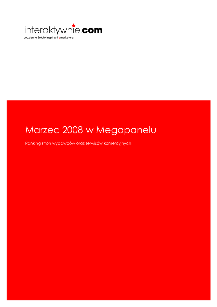 codzienne źródło inspiracji emarketera Marzec 2008 w Megapanelu Ranking stron wydawców oraz serwisów komercyjnych Wstęp Czołówka w marcu nie zaskoczyła. Google, Onet.pl i Wirtualna Polska trzymały się mocno, choć na plecach poczuły oddech Naszej-Klasy, która zostawiła w tyle Allegro i Interię. W kategorii sklepów internetowych i serwisów aukcyjnych również nie doszło do wielkich przetasowań. Witryny bankowe też nie wzbudziły się jeszcze z zimowego snu. Jak zwykle bogata w kampanie reklamowe branża motoryzacyjna odnotowała kilka poważnych wzrostów w rankingach. Wśród firm ubezpieczeniowych znacząco namieszał Liberty Direct – nowy gracz na polskim rynku ubezpieczeń. Witryny FMCG zyskały nowego lidera. Co najciekawsze, wyniki Megapanel PBI/Gemius pokazują potencjał reklamowy tkwiący w Naszej-Klasie. W marcu zaobserwowaliśmy pierwsze próby jego wykorzystania. Udane (pod względem ilości wejść na stronę) kampanie przeprowadziły: sklep TwojeKwiaty.pl, Bruno Banani i Renault. 2 Witryny wydawców lp. nazwa 1 Google audyt sitecentric użytkownicy (real users) użytkownicy (real users) zmiana % odsłony średni czas na użytkownika [godz:min:s] zasięg 12 082 162 0,5% 3 373 345 956 05:50:23 83,22% 2 Onet.pl 3 Wirtualna Polska 9 769 986 0,8% 4 001 927 866 07:02:48 67,30% 8 265 105 1,6% 2 229 420 705 04:50:41 56,93% 4 nasza-klasa.pl 7 461 271 1,9% 6 948 303 157 08:53:28 51,39% 5 INTERIA.PL 7 449 461 0,9% 1 196 534 947 03:09:46 51,31% 6 Allegro.pl 7 o2.pl 7 226 864 -1,5% 4 599 470 454 04:54:32 49,78% 7 061 132 0,1% 1 030 447 314 04:02:16 48,64% 8 Gazeta.pl 6 468 576 3,8% 432 603 653 01:19:40 44,56% 9 youtube.com 6 392 012 -3,9% 805 049 351 03:00:04 44,03% 10 wikipedia.org 5 909 555 -1,1% 211 962 811 00:46:33 40,71% 11 Microsoft 5 540 064 -3,3% 167 282 793 00:29:01 38,16% 12 Grupa Fotka.pl 3 848 110 -6,5% 2 440 389 704 05:54:07 26,51% 13 Grupa Gadu-Gadu 3 729 421 -10,1% 140 953 246 00:49:16 25,69% 14 Orange 3 102 519 -21,7% 169 581 672 00:45:23 21,37% 15 Grupa IDG 3 041 859 -6,0% 25 096 439 00:07:59 20,95% 16 mozilla.org 3 004 865 -8,9% 12 786 983 00:03:15 20,70% 17 pf.pl 2 978 714 -0,5% 26 435 388 00:08:17 20,52% 18 Grupa Medousa.pl 2 760 370 4,7% 49 788 804 00:12:00 19,01% 19 otoMoto 2 741 682 -0,5% 233 439 142 01:37:41 18,88% 20 gry.pl 2 630 327 6,0% 596 516 931 03:19:30 18,12% Żródło: Badanie Megapanel PBI/Gemius realizowane przez Polskie Badania Internetu Sp. z o.o. i Gemius SA, Marzec 2008 Lider wśród najpopularniejszych witryn wydaje się być poza zasięgiem konkurencji. Google miał w marcu o 23,66% więcej użytkowników niż Onet i aż o 46,18% więcej niż Wirtualna Polska. Nasza-Klasa po raz kolejny podniosła swoją pozycję w rankingu. Serwis stworzony przez Macieja Popowicza wyprzedził takich potentatów jak Interia i Allegro. Poprawiając swój wynik w marcu o 1,9% Nasza-Klasa wylądowała na 4. pozycji w rankingu, jednak warto zaznaczyć, że różnice między 4. a 6. pozycją oscylują w granicach jednego procenta, więc nie jest to pozycja gwarantująca spokojny sen w kolejnych miesiącach. Trzecia w zestawieniu Wirtualna Polska nie musi jednak czuć się zagrożona, gdyż różnica między trzecią a czwartą pozycją w rankingu to 800 tys. użytkowników, co przy obecnie obserwowanych trendach wydaje się być żelazną kurtyną. Zwłaszcza, że N-K zaczyna wykazywać pierwsze symptomy spowolnienia. Jeszcze w styczniu każdy użytkownik przebywał w serwisie miesięcznie średnio 11 godz. i 15 min, w lutym było to 10 3 godz. i 10 min, a w marcu już tylko 8 godz. i 53 minuty. Większość prognoz mówiła, że tak ogromna popularność N-K nie może się utrzymać i wygląda na to, że przewidywania te okazały się trafne. Ten wzbudzający w ostatnich latach kontrowersje projekt internetowy zaczyna się powoli przegrzewać. Kwietniowe i majowe wyniki mogą zatem przynieść wiele niespodzianek. Warto również odnotować, że Nasza-Klasa pośrednio oddziaływała na inne wymienione w opracowaniu kategorie. W lutym serwis twojekwiaty.pl dzięki skromnemu bannerowi „Wyślij kwiaty” w profilach użytkowników N-K zyskał pozycję lidera zestawienia najpopularniejszych sklepów internetowych (pod względem liczby real users). W porównaniu ze styczniem wzrost wyniósł aż 3.829,7% i gdyby nie słaba pozycja wyjściowa, z pewnością takiego wyniku nie powstydziłby się żaden ze specjalistów od marketingu internetowego. Wraz z końcem kampanii w marcu liczba użytkowników spadła o 45,9% do 961 tys. Podobne zjawiska mogliśmy zaobserwować w przypadku serwisów magicman-club.com oraz renault.pl. Utworzenie profilu Magic Mana na NaszejKlasie zapewniło marce Bruno Banani pozycję absolutnego lidera branży FMGC. Konkurencja została zdeklasowana. Serwis w marcu miał 1.357.346 użytkowników i tym samym uzyskał największy wzrost we wszystkich omawianych kategoriach. Przewaga w liczbie użytkowników nad drugim w rankingu tesco.pl sięgała aż 66,13%. Kampania Magic Mana osiągnęła naprawdę imponujący wynik i wygląda na to, że Nasza-Klasa wreszcie zaczęła wykorzystywać swój potencjał reklamowy. Zestawienie 20 najpopularniejszych witryn nie przynosi już większych niespodzianek. Warto jeszcze odnotować ponad 20-procentowy spadek liczby odwiedzających witrynę Orange oraz wejście do zestawienia serwisu gry.pl, który wypchnął poza pierwszą 20-tkę Ceneo.pl. Ta porównywarka cen spadła na 21. pozycję i co ciekawe – stało się to pomimo tego, że liczba użytkowników wzrosła o 1,5% w porównaniu z poprzednim miesiącem. 4 Sklepy internetowe i serwisy aukcyjne lp. nazwa użytkownicy (real users) użytkownicy (real users) zmiana % zasięg 1 Allegro.pl 7 226 864 -1,5% 49,78% 2 eBay 1 720 982 11,6% 11,85% 3 merlin.pl 966 679 -2,3% 6,66% 4 twojekwiaty.pl 961 554 -45,9% 6,62% 5 wysylkowa.pl 721 852 6,8% 4,97% 6 empik.com 687 558 2,6% 4,74% 7 bonprix.pl 676 926 -4,0% 4,66% 8 quelle.pl 610 297 57,5% 4,20% 9 