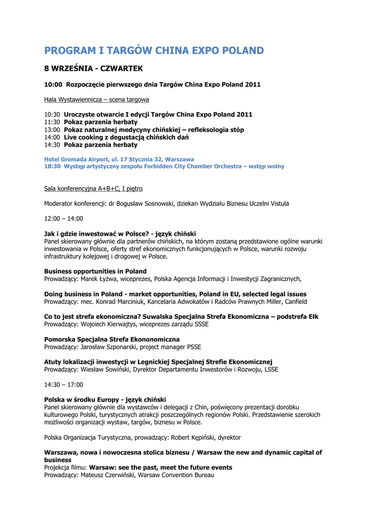 PROGRAM I TARGÓW CHINA EXPO POLAND