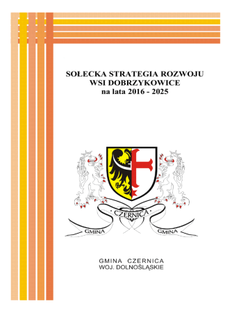 SOŁECKA STRATEGIA ROZWOJU WSI DOBRZYKOWICE na lata 2016 - 2025 WSTĘP Polska wieś potrzebuje inwestycji i rozwoju aktywności lokalnej. W tym celu konieczne jest pobudzanie społecznej aktywności mieszkańców, a także korzystanie z wszelkich dostępnych programów inwestycyjnych. Pozwoli to na polepszenie sfery socjalnej i jakości życia mieszkańców małych miejscowości. Zadania z zakresu odnowy wsi nie są wyłącznie powiązane z funduszami unijnymi. Wszelkie fundusze pozabudżetowe na przykład w ramach Kontraktu wojewódzkiego, środki z Narodowego Funduszu Ochrony Środowiska i Gospodarki Wodnej, Fundacji Odnowy Wsi itp. mogą stanowić potencjalne źródło sfinansowania inwestycji. Główną rolę jednak w sfinansowaniu zaplanowanych do realizacji zadań będą odgrywać środki pochodzące z Programu Rozwoju Obszarów Wiejskich, w ramach działania „Odnowa i rozwój wsi” Jednym z warunków koniecznych uzyskania dofinansowania w ramach tego działania jest sporządzenie dokument o charakterze średnioterminowej prognozy ekonomiczno-finansowej, tak, aby możliwe było sporządzenie wniosków o dofinansowanie inwestycji i skonstruowanie właściwego i realnego montażu finansowego budżetu poszczególnych przedsięwzięć. Sołecka Strategia Rozwoju Wsi Dobrzykowice jest ściśle powiązana ze „Strategia z elementami planowania rozwoju lokalnego Gminy Czernica na lata 2014 – 2025”, „Strategią rozwoju Powiatu Wrocławskiego na lata 2012 – 2020”, „Strategią rozwoju Województwa Dolnośląskiego 2020” oraz kierunkiem zagospodarowania przestrzennego. Zawiera ona w szczególności: analizę zasobów Sołectwa, porównanie korzystnych i niekorzystnych cech wewnętrznych wsi oraz potencjalnych szans i zagrożeń występujących w otoczeniu, które mogą warunkować przyszłość sołectwa i ich mieszkańców, wizję rozwoju wsi wraz z jej priorytetami i projektami rozwojowymi wraz z elementami montażu finansowego projektów do realizacji. Przygotowanie Sołeckiej Strategia Rozwoju Wsi Dobrzykowice wymagało ścisłej współpracy pomiędzy sołectwem i urzędem gminy oraz spójności planów. Ma ona służyć pełnemu wykorzystaniu istniejącego potencjału i szans rozwojowych, w tym dostępu do środków unijnych i funduszy rządowych. I. CHARAKTERYSTYKA MIEJSCOWOŚCI DOBRZYKOWICE I.1. Prezentacja miejscowości Miejscowość Dobrzykowice znajduje się we wschodniej części powiatu wrocławskiego i zachodniej części gminy Czernica. Graniczy z miastem Wrocław. Położona jest przy drogach powiatowych nr 1535D, 1922D, 1923D i 1924D. Leży na obszarze pólnocnego układu przestrzennego sieci osiedleńczej gminy Czernica pełniącego funkcję zaplecza mieszkaniowego dla Wrocławia i JelczaLaskowic. Na terenie miejscowości powstały 2 nowoczesne osiedla: „Zielone Osiedle” i “Dobrzykowice Park”.Charakteryzuje je klasyczna, oszczędna w formie architektura domów oraz kompleksowe zagospodarowanie terenu. Oświetlone drogi osiedlowe, chodniki i sięgacze pieszo-jezdne zapewnią komfort dojazdu do posesji. Zieleń w strefie wjazdowej i wzdłuż osiedlowych uliczek (ukwiecone klomby przy wjeździe, drzewa przy każdej furtce) nadają im przyjaznego charakteru. W perspektywie kilku lat, na północny zachód od miejscowości będzie przebiegać południowowschodnia nitka obwodnicy podmiejskiej Bielany-Długołęka. I.2. Dziedzictwo historyczne KALENDARIUM o Pierwsza wzmianka o miejscowości pochodzi z 1257 roku, kiedy to książę wrocławski Henryk III Biały nadał wieś Dobricouicki rycerzowi Henrykowi de Gurgouiz, którego nazwisko zdradza w brzmieniu francuskie pochodzenie. Polska nazwa etymologiczna wywodzi się najprawdopodobniej od staropolskiego imienia Dobrzyk. Mógł to być założyciel wsi, żyjący w XII lub w XIII stuleciu. o W 1298 napotykamy już na zniemczoną nazwę Wustendorfh. Odnosi się ona do opustoszałej wsi. Sugeruje ona opuszczenie miejscowości z nieznanych przyczyn około połowy XIII stulecia, być może na skutek klęski żywiołowej. W 1298 roku kolejny właściciel posiadłości, Konrad de Sulz sprzedał ją Przecławowi z Maniowa. o W 1305 roku wieś nabył wrocławski klasztor św. Macieja krzyżowców z czerwoną gwiazdą. W dokumencie sprzedaży poświadczono nazwę wsi Wustindorf. Pośrednio wzmiankowano wtenczas istniejący tu kościół p.w. Narodzenia NMP, nad którym krzyżowcy objęli patronat. „PLAN ODNOWY MIEJSCOWOŚCI” SOŁECTWO DOBRZYKOWICE, GMINA CZERNICA, WOJEWÓDZTWO DOLNOŚLĄSKIE 2/ 23 o Przed 1324 rokiem miała miejsce lokacja na prawie niemieckim, podczas której wytyczono plan wsi o układzie ulicówki. o W latach 1353 oraz 1366 wymieniany był tutejszy proboszcz, m.in. przy okazji przejścia kościoła pod zarząd parafii w Gajkowie. Najprawdopodobniej stary średniowieczny kościół rozebrano w XVI stuleciu i postawiono w jego miejscu nową, drewnianą budowlę. Zachowany z poł. XVIII wieku rysunek śląskiego topografa Georga Wernhera ukazuje drewnianą, szachulcową budowlę na planie prostokąta z sygnaturką między nawą główną a prezbiterium, z okazałą, wolnostojącą drewnianą wieżą na planie poligonalnym usytuowaną przed wejściem od zachodu. Kościół ów otaczał mur z kilkoma bramami wiodącymi na teren cmentarza. Budynek ten spłonął w 1753 roku, wraz ze znaczną częścią wsi. Jedyną pozostałością z wyposażenia XVI kościoła jest kielich mszalny, wykonany w 1685 roku przez wrocławskiego złotnika Gotfryda Heynera, ufundowany – jak głosi napis pod stopką- przez szynkarza z Dobrzykowic Melchiora Hildebrandta. Z materiałów wizytacyjnych z 1666/1667 roku wiadomo, że świątynia ta posiadała 3 ołtarze, z których żaden nie był konsekrowany. o W XVII stuleciu miejscowość zamieszkiwali w większości protestanci, dlatego nie przechowywano w świątyni Najświętszego Sakramentu w obawie przed zbezczeszczeniem. Msza odprawiana była, co 3 niedzielę w port